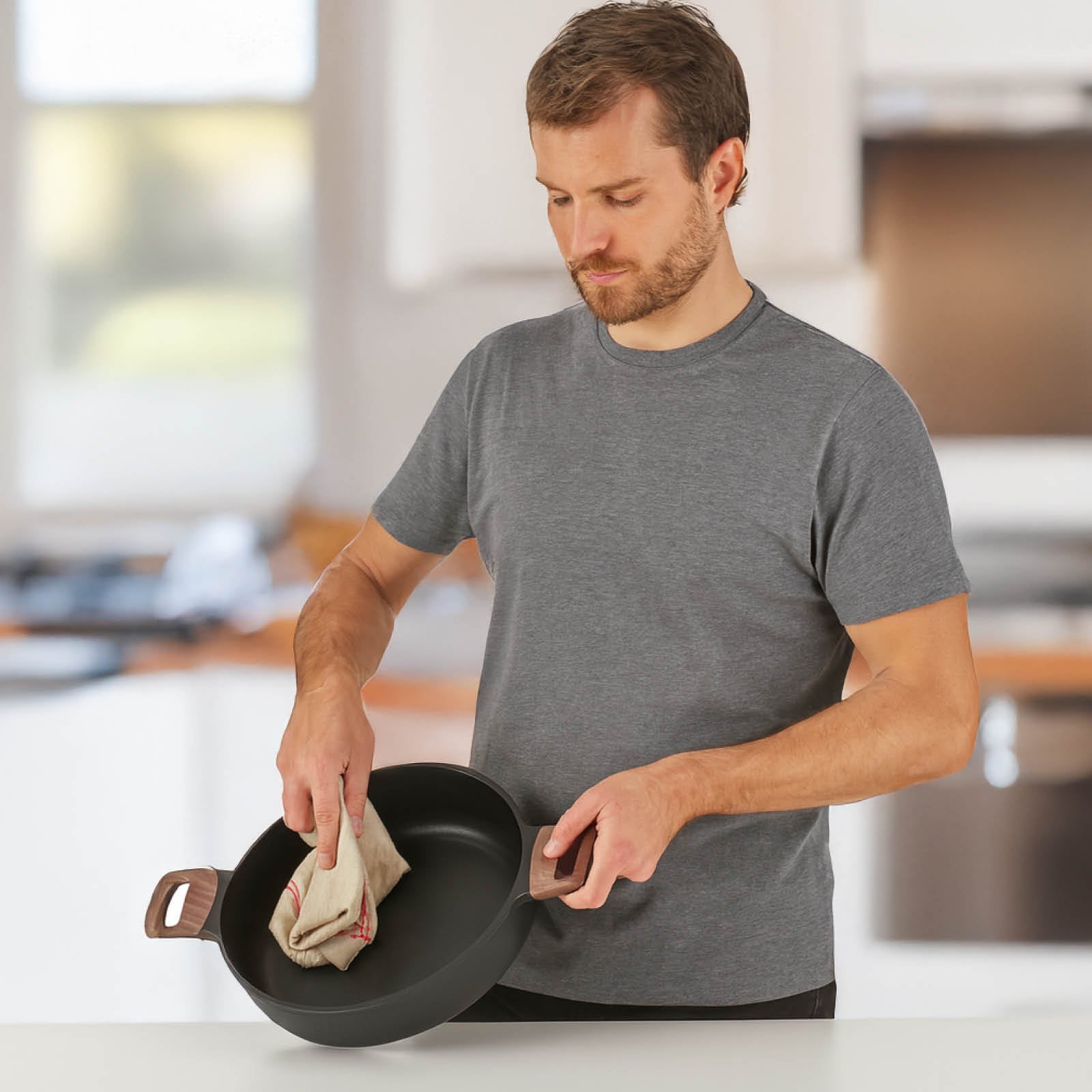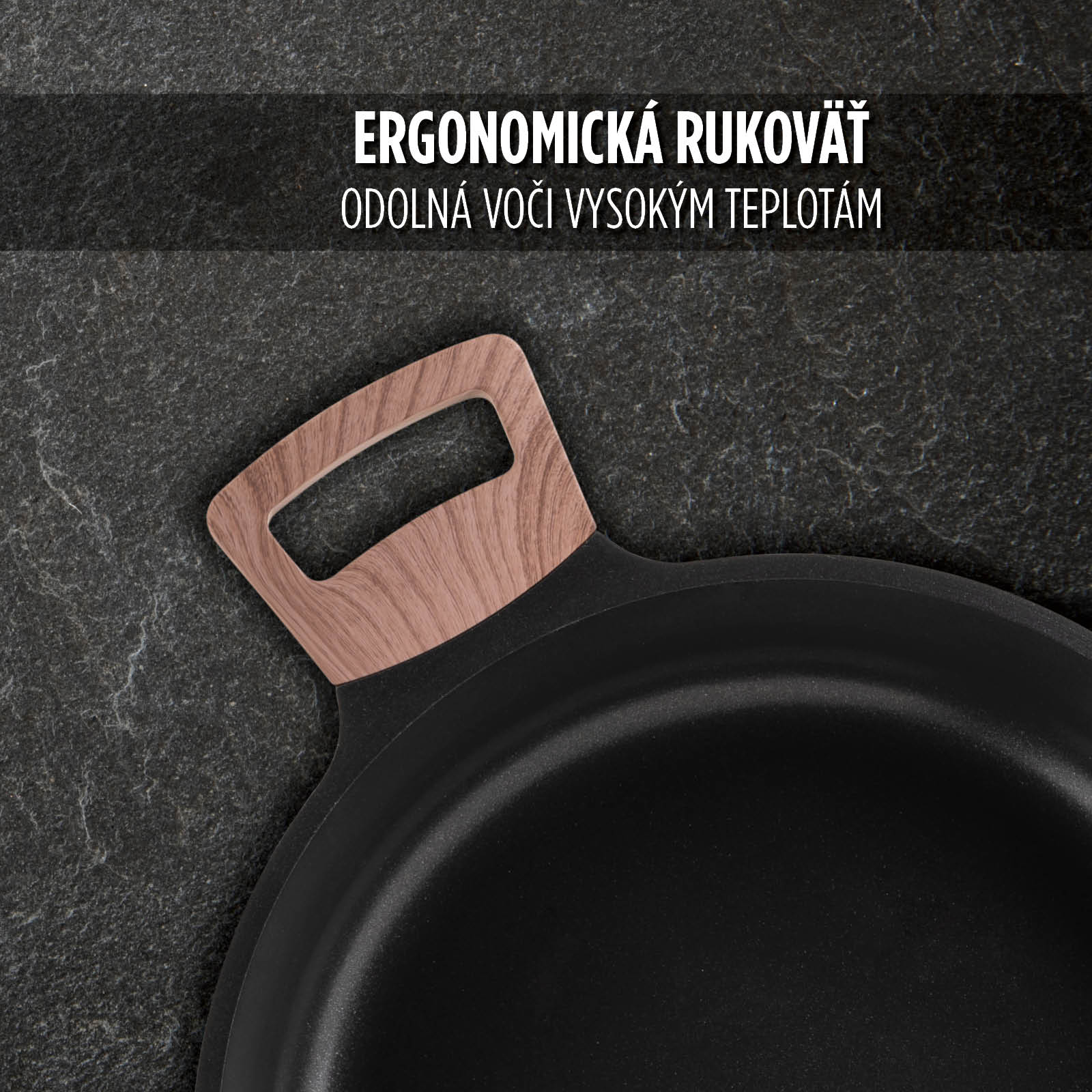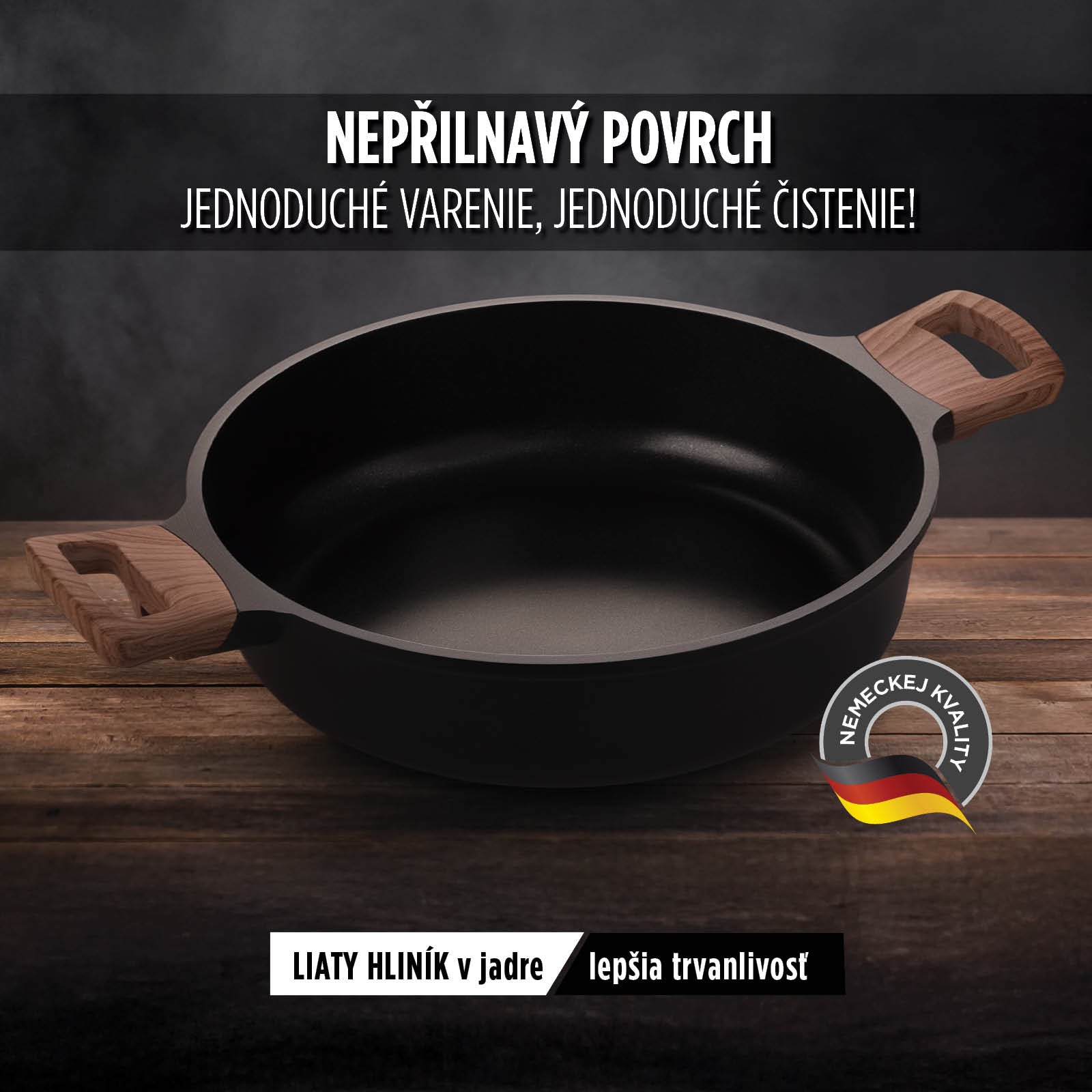 - Nízky kastról s priemerom 28 cm z kvalitného liateho hliníka.