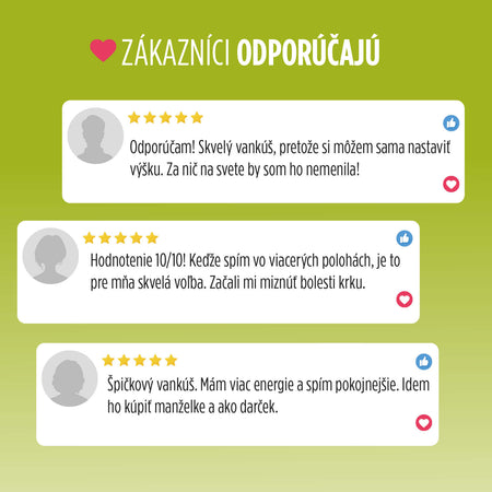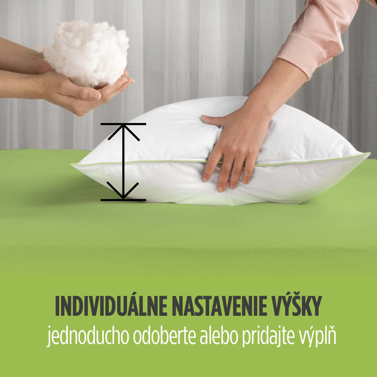 - Individuálne nastaviteľná výška a tvrdosť pre tých, ktorí si chcú vankúš vytvarovať podľa svojich spánkových návykov.