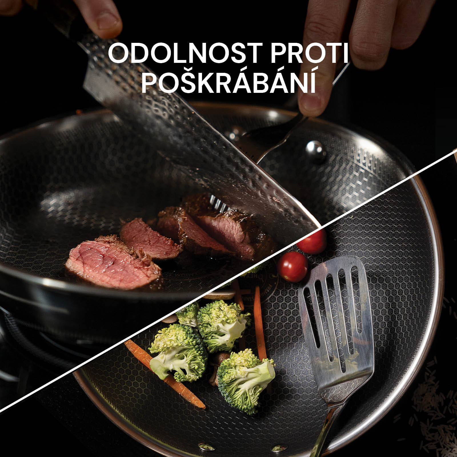 Celá rada kuchynského riadu HexaPRO má nezničiteľnú vrstvu, ktorá je odolná voči škrabancom. To znamená, že nože ani kovové špachtle nepoškodia povrch riadu. Laserovo rezané oceľové hexagóny zabezpečujú trvanlivý povrch, ktorý umožňuje rovnomerné rozloženie tepla a dokonalé varenie.
