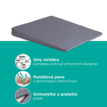 - Pamäťová pena vankúša sa prispôsobí tvaru tela a poskytuje individuálnu podporu pri každom použití.