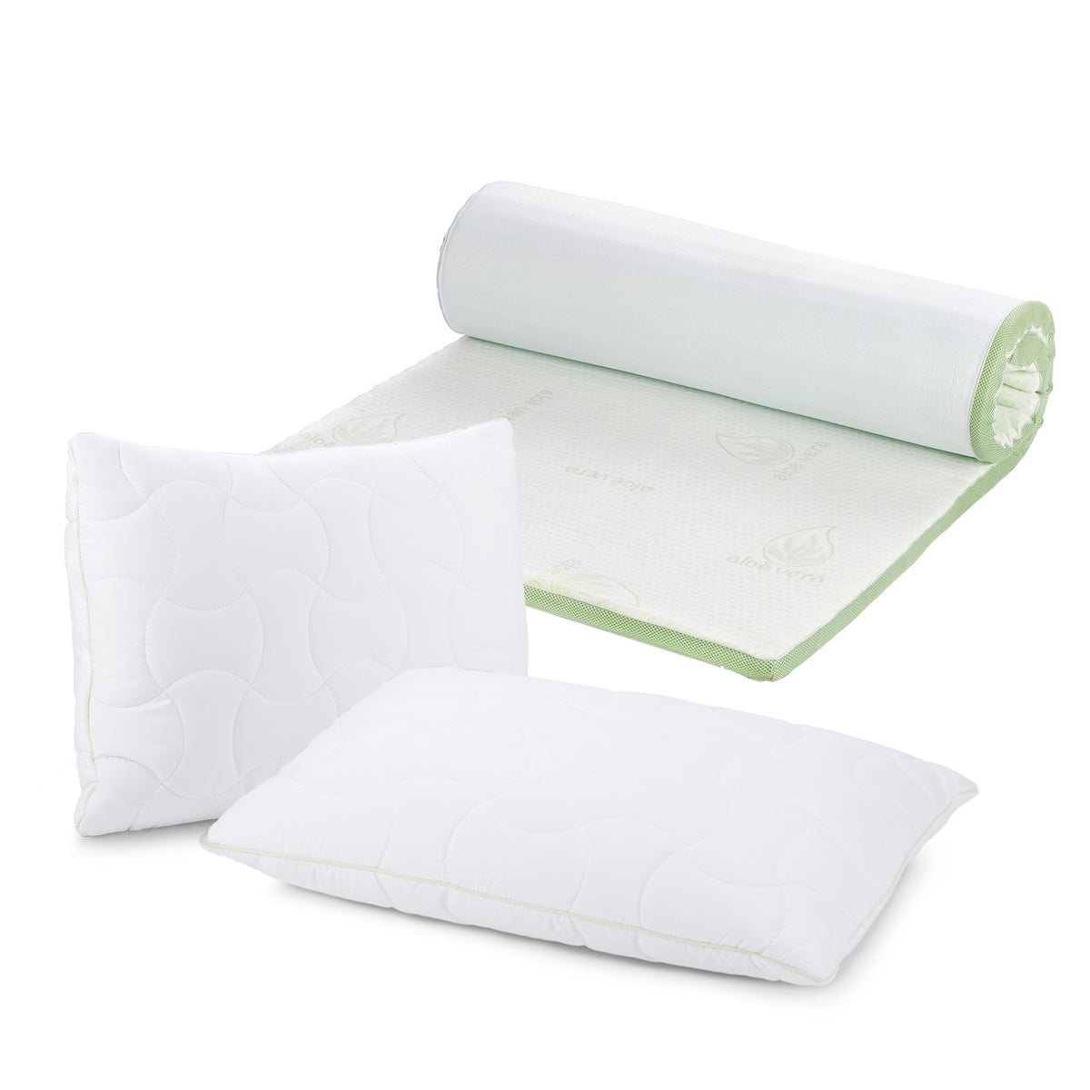 - Najlepšia kombinácia pre spánok: vrchný matrac a 2 vankúše s pridaným aloe pre pokojný spánok.