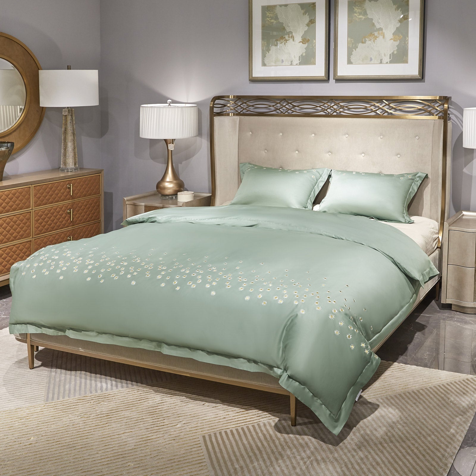 - Prémiová vyšívaná posteľná bielizeň zo 100 % bavlny egyptskej kvality.