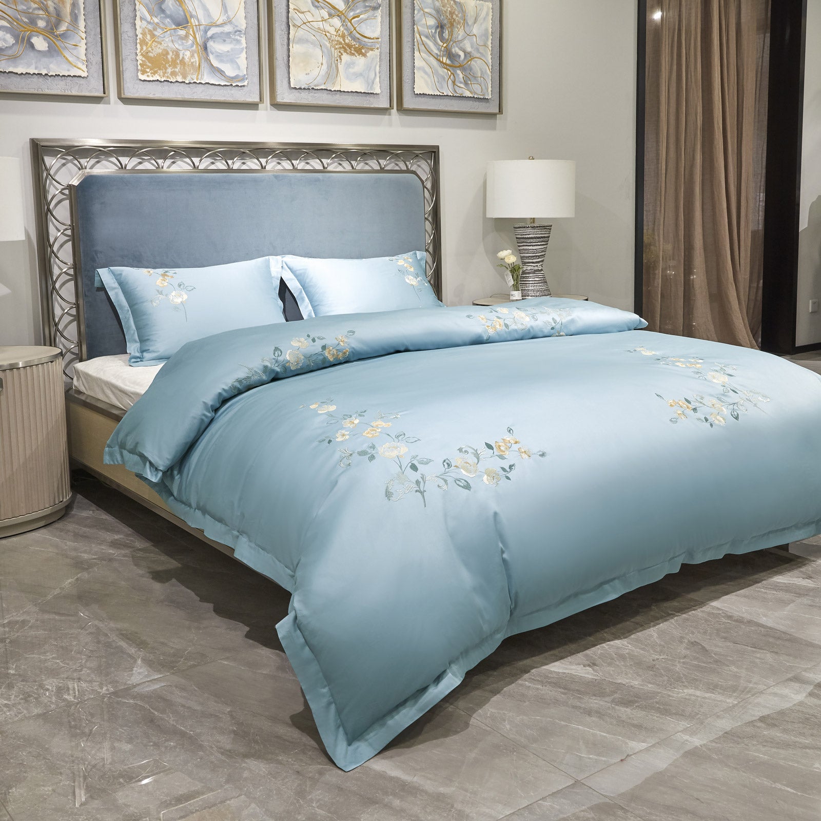 - Prémiová vyšívaná posteľná bielizeň zo 100 % bavlny egyptskej kvality.