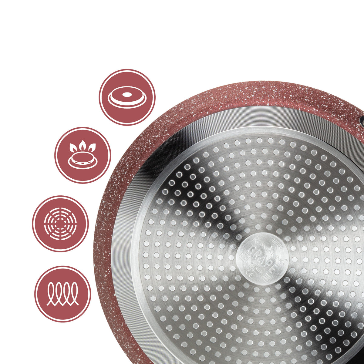 Moderná technológia varenia sa zhoduje s jedným z najstarších spôsobov prípravy jedla - na kameni. Vnútorná časť panvice je potiahnutá špeciálnou hladkou minerálnou vrstvou, ktorá umožňuje prirodzený spôsob varenia a pečenia. To znamená, že môžete variť s minimálnym množstvom tuku a jedlo si zachová viac živín, vitamínov a minerálov. Odporúčame používať drevené alebo silikónové náčinie, aby sa zachovala kvalita povrchu.