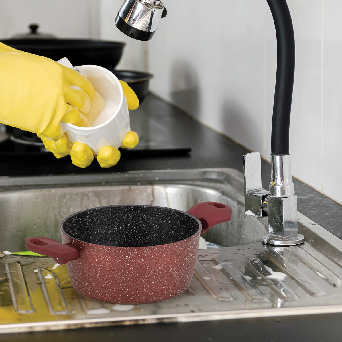 - Vhodná na všetky typy varných dosiek vrátane indukcie a možno ju umývať v umývačke riadu.