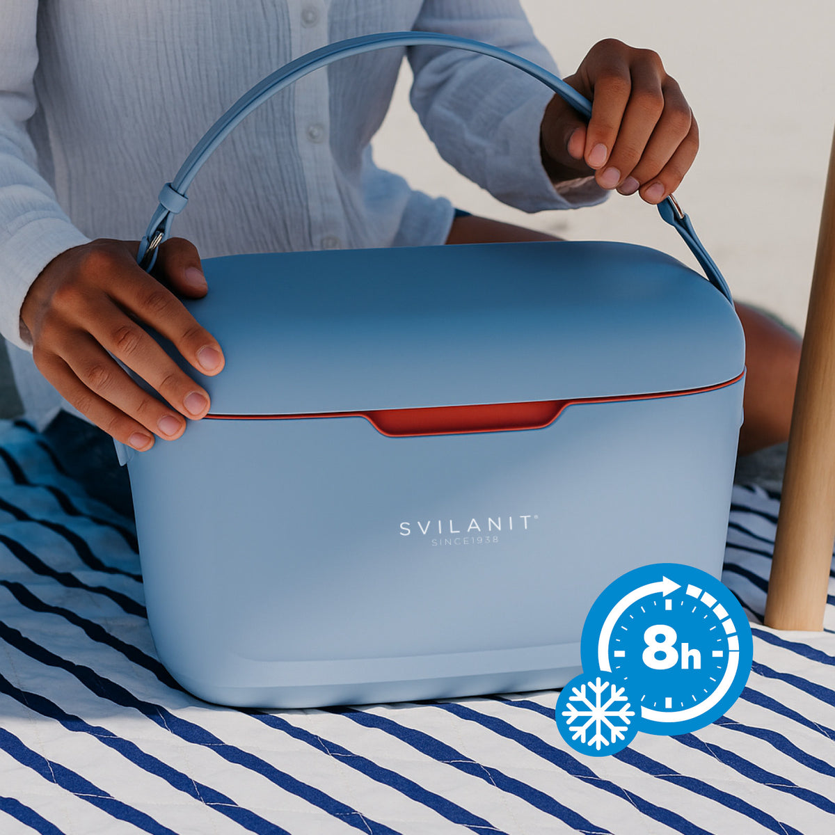Od spontánnych piknikov po plánované rodinné výlety, od pláže po horské chodníky – chladiaci box Svilanit odolá všetkým letným výzvam. Vysokokvalitné materiály nevykazujú žiadne opotrebovanie ani po intenzívnom používaní, zatiaľ čo vďaka jednoduchej údržbe bude váš box každú sezónu vyzerať ako nový. Vnútorný priestor jednoducho vyčistíte vlhkou handričkou a vonkajší povrch si zachová svoju žiarivú farbu aj po mnohých slnečných dňoch.