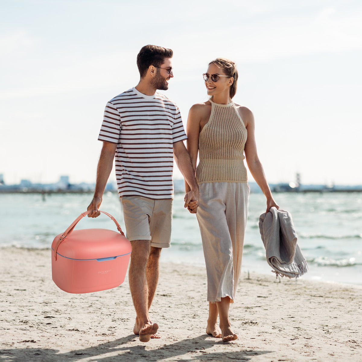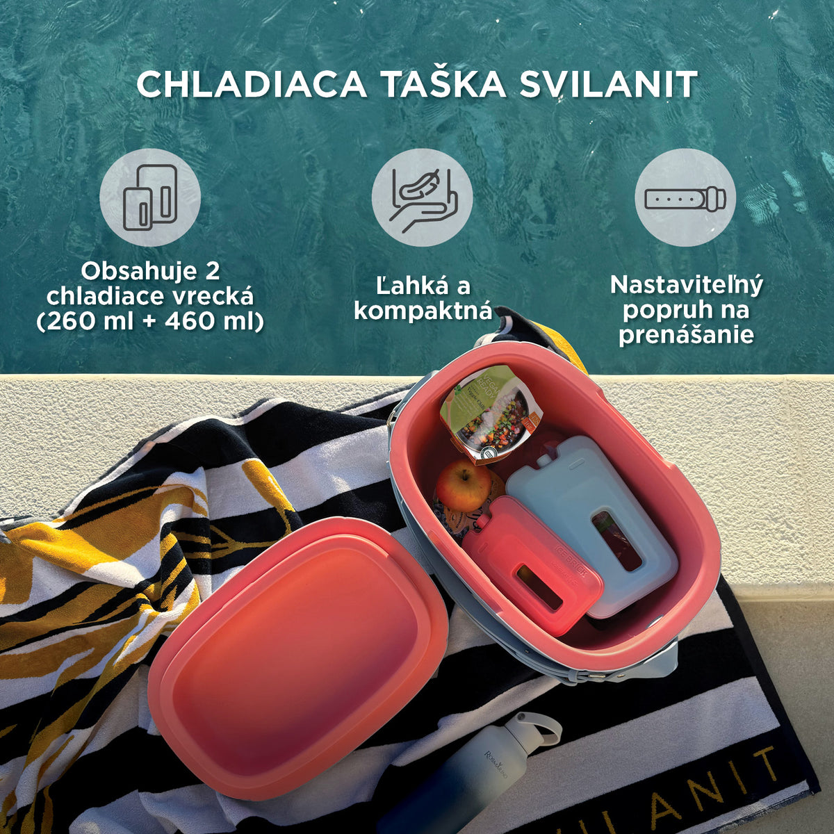 Zabudnite na mäkké chladiace tašky, ktoré sa ľahko prevrátia, a na neatraktívne chladiace tašky, ktoré schováte pod uterák! Elegantný a odolný chladiaci box Svilanit je vaším nepostrádateľným spoločníkom počas teplých dní. Či už sa chystáte na rodinný piknik, romantický výlet k moru, alebo jednoducho potrebujete spoľahlivé každodenné chladenie, tento praktický box zabezpečí, že vaše nápoje zostanú ľadovo chladné a potraviny čerstvé celé hodiny. Dve priložené nádoby na ľad poskytujú ešte dlhšie a intenzívnejšie chladenie. Box, ktorý je k dispozícii v 2 veľkostiach a 2 krásnych letných farbách, bude niečím, čím sa budete hrdo pýšiť, a jeho prenášanie je jednoduché vďaka nastaviteľnému a pohodlnému popruhu cez rameno.