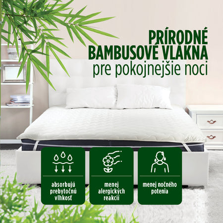 Bambusové vlákna pre suchšie prostredie na spanie. Vďaka svojej jedinečnej štruktúre vytvárajú vo výplni vzduchové kapsy pre pokojnejší spánok.