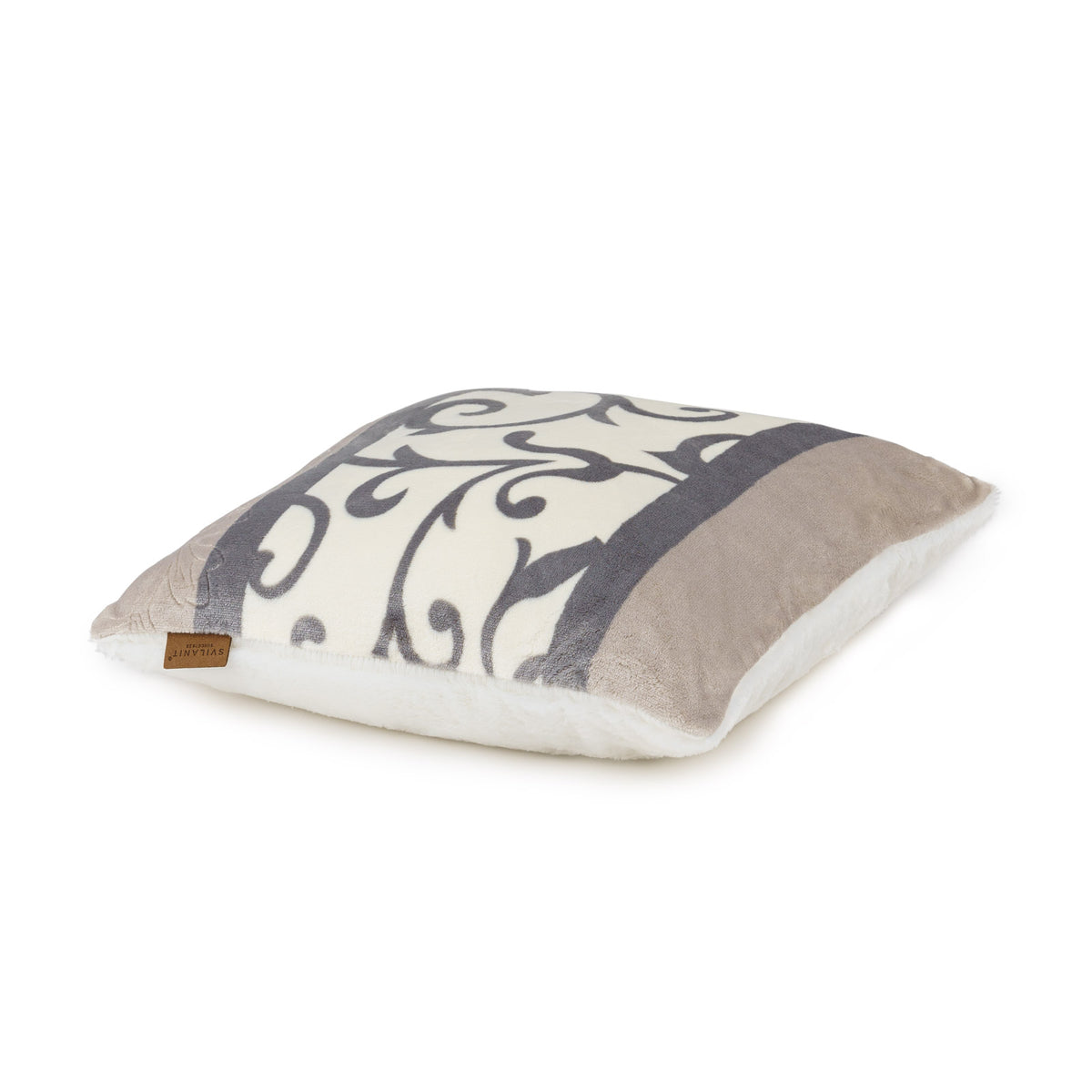 Dekoratívny vankúš Svilanit Beatrice možno použiť z oboch strán. Stačí vankúš otočiť a okamžite tak zmeníte celkový vzhľad miestnosti. Jedna jeho strana je jednofarebná látka, pričom tá druhá má štýlovú potlač.