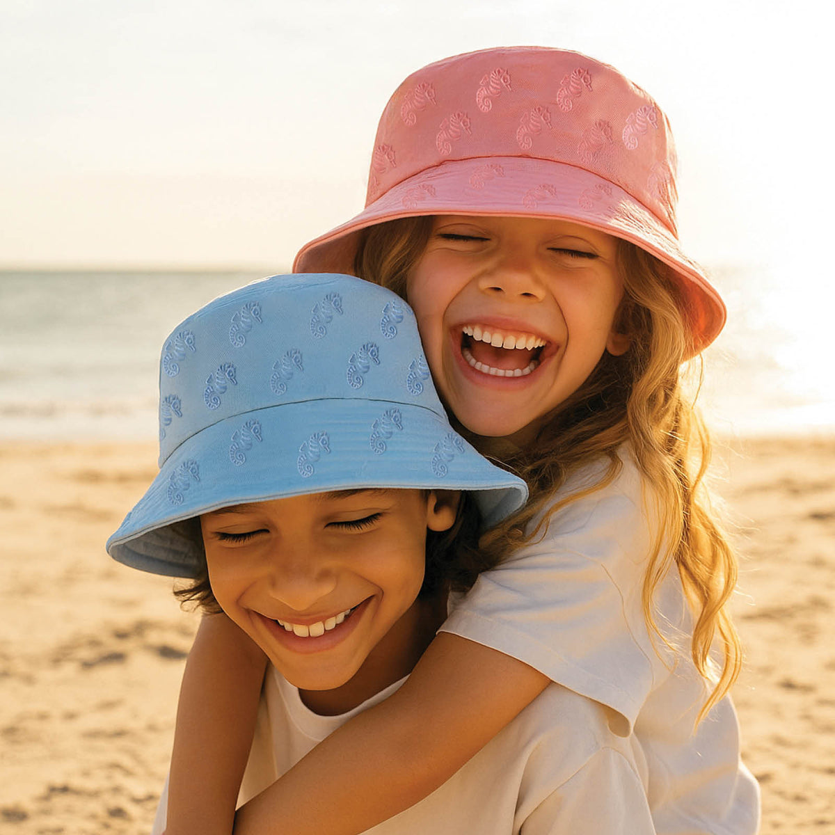 Detská pokožka je obzvlášť citlivá na slnečné žiarenie, preto klobúky Seahorse poskytujú účinnú ochranu proti UV žiareniu 50+. Deti sa môžu voľne hrať na pláži, v parku alebo v záhrade, pričom ich pokožka a oči sú dobre chránené pred škodlivým UV žiarením.