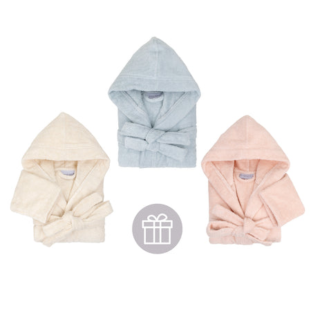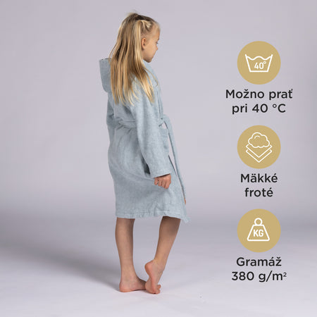 - Detský župan vyrobený zo 100 % organickej bavlny.