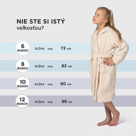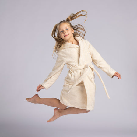 Po večernom kúpaní alebo hodinách strávených v bazéne si deti s radosťou oblečú tento župan, ktorý je taký mäkký a upokojujúci ako mamin objatie. Prírodný, priedušný materiál zaistí vášmu dieťaťu pohodlie a je šetrný k citlivej pokožke. Husté tkanivo a gramáž 380 g/m² zaručujú vysokú savosť, no materiál zostáva ľahký a rýchlo schne.