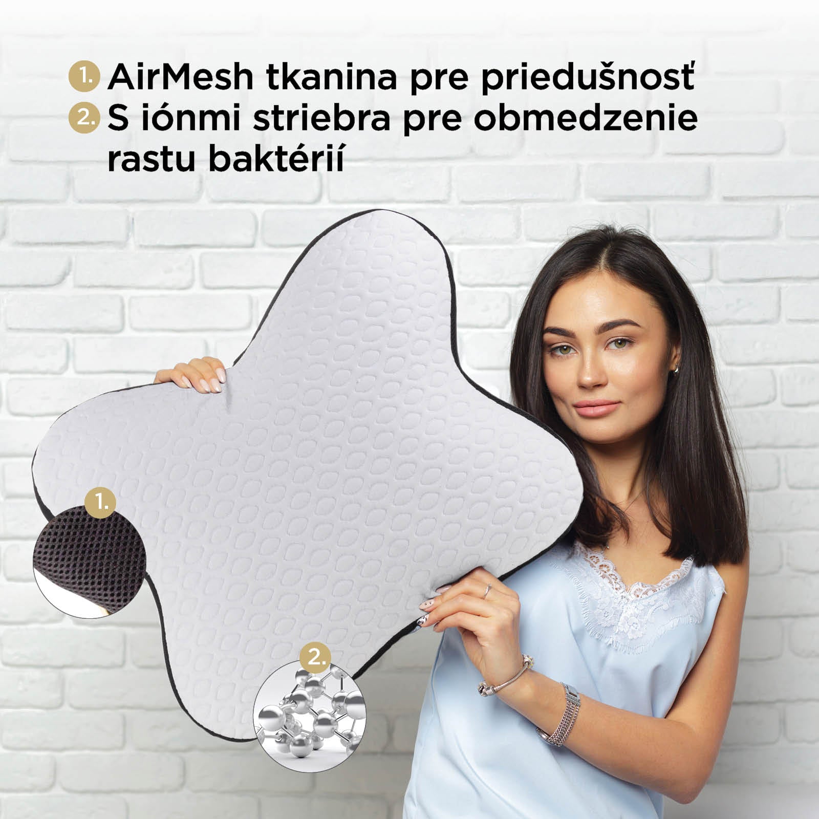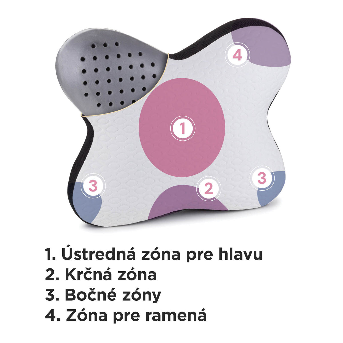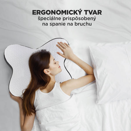 Ergonomický vankúš v tvare motýľa pre pokojnejšie noci.
