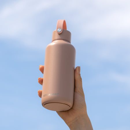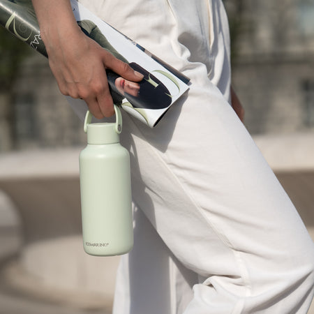 - Robustná fľaša z nehrdzavejúcej ocele v pastelových farbách.