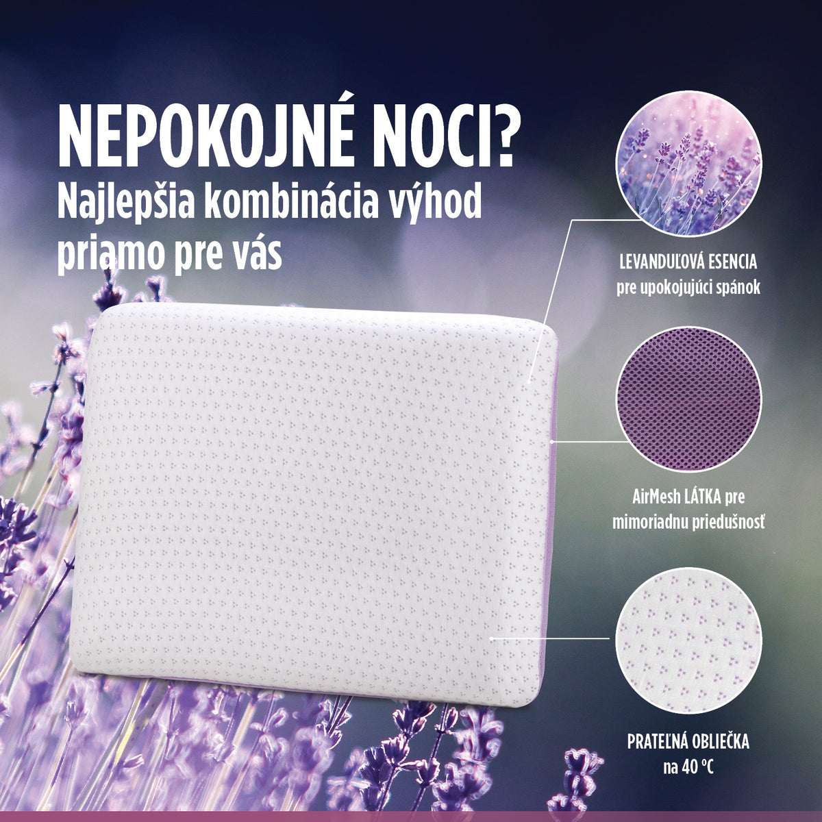 - Tento vankúš s upokojujúcou levanduľovou vôňou zlepšuje kvalitu vášho spánku a je vhodný pre všetkých, ktorí trpia nespavosťou a únavou.