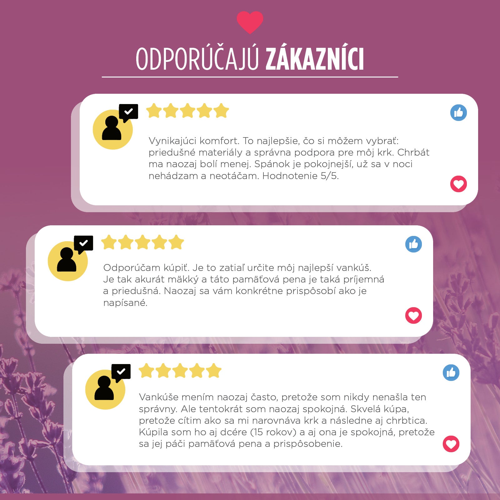 - Dokonalá kombinácia pamäťovej peny a univerzálneho tvaru pre pohodlný spánok bez bolesti.