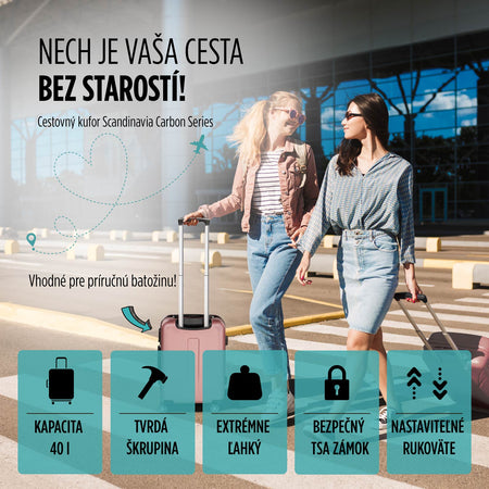 Séria Scandinavia Carbon spája to najlepšie, čo si môžete dovoliť: priestranný interiér, odolnosť, inovácie, bezpečnosť a eleganciu. Bezstarostné výlety a cestovanie sú so 40-litrovými kuframi zaručené.