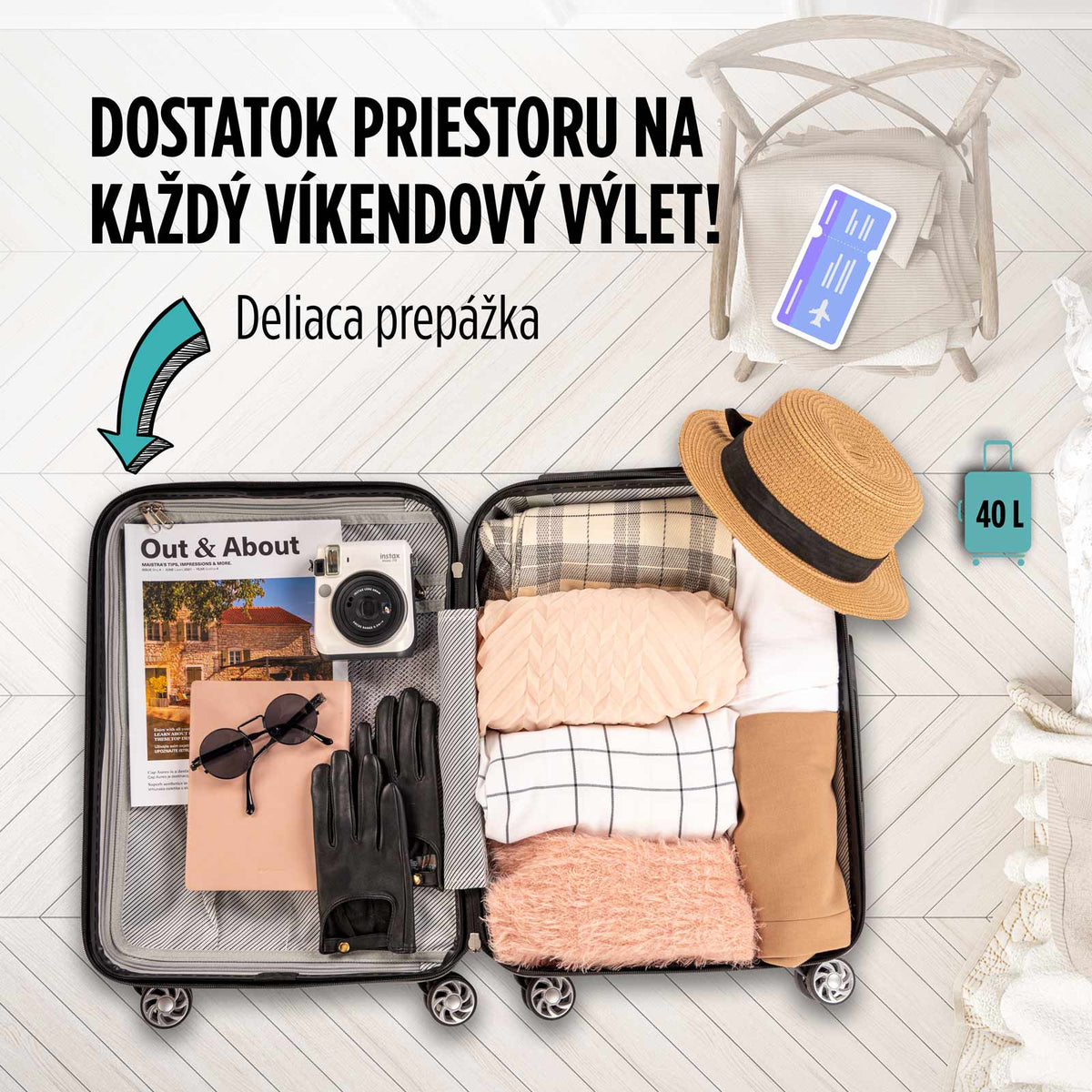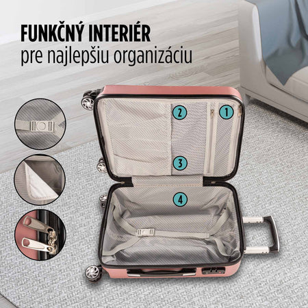 - 40-litrový kufor spĺňa štandardy príručnej batožiny 90 % leteckých spoločností (štandard IATA).