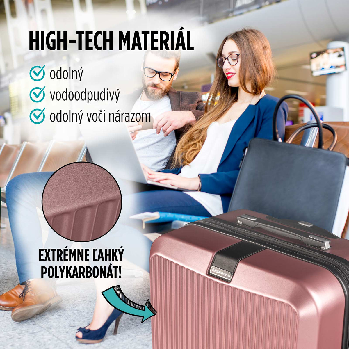 - Tvrdý kufor vyrobený z najkvalitnejšieho polykarbonátu (PC).