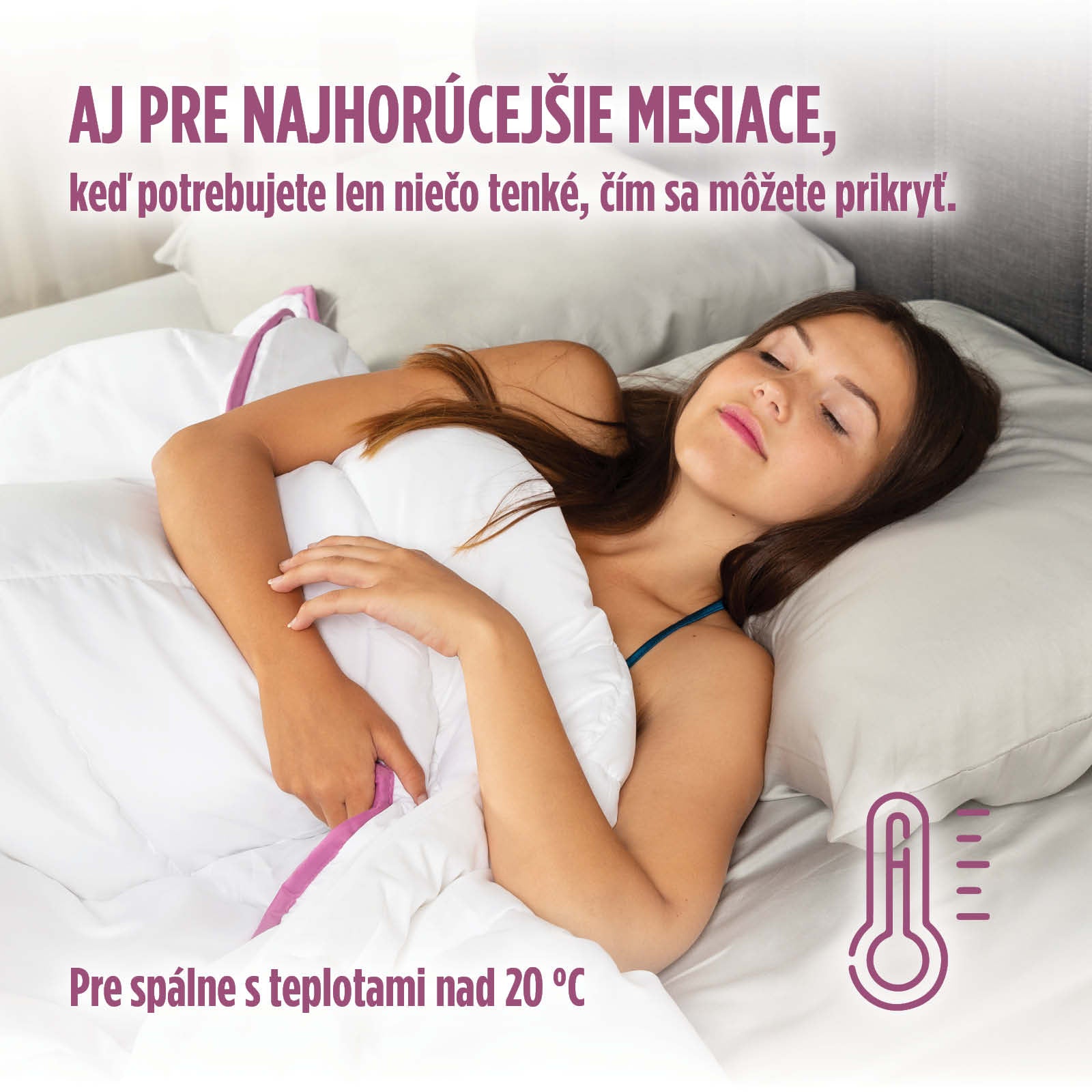 - Na pohodlný spánok v horúcich letných mesiacoch, vhodný do spálne s teplotou nad 20 °C.