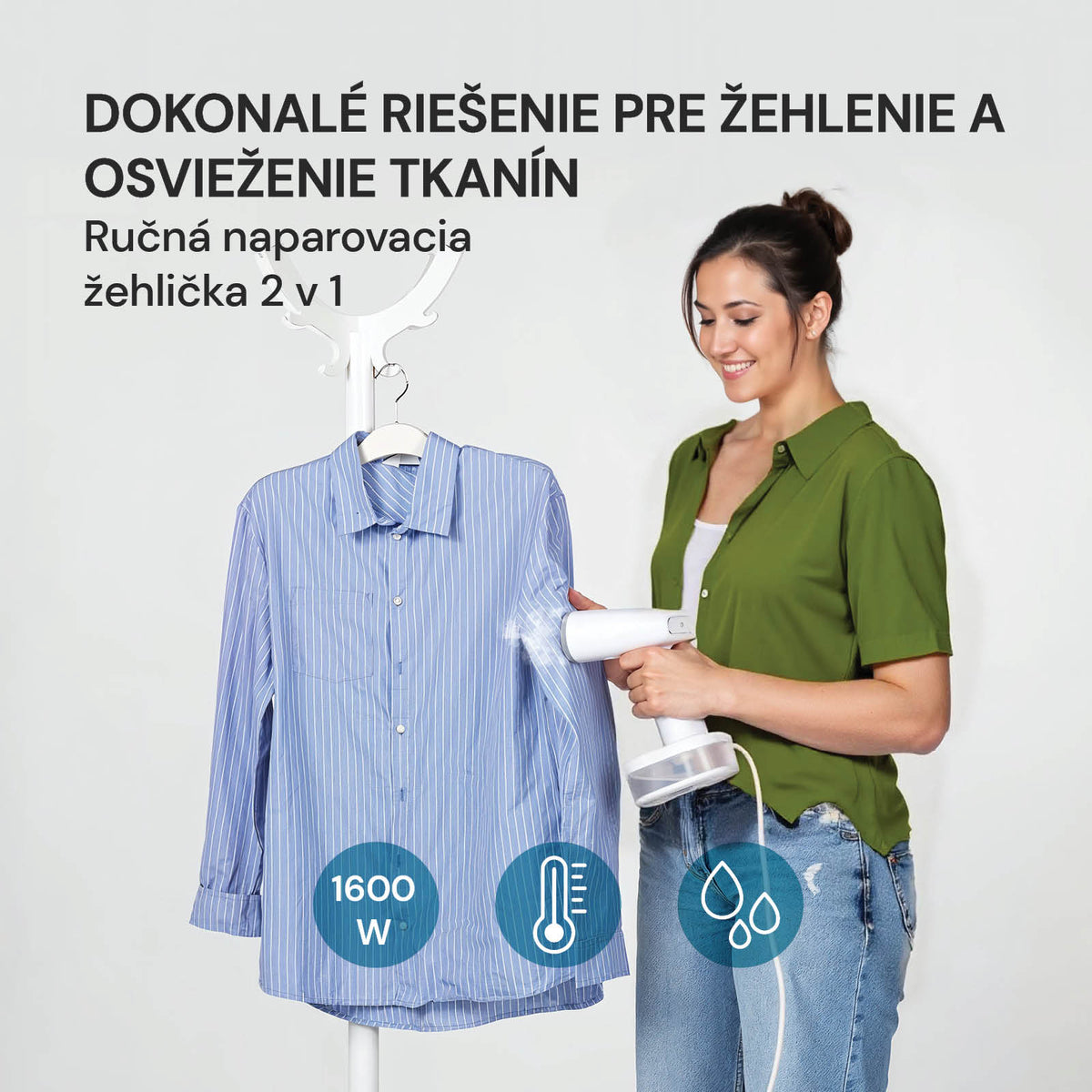 - Naparovač odevov 2 v 1: rovnomerne naparuje a odstraňuje pachy z tkanín.
