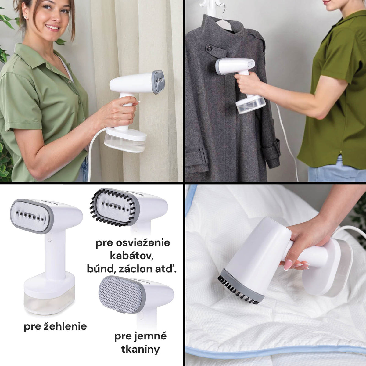 - S naparovačom môžete osviežiť a vyžehliť všetky odevy alebo textílie vhodné na žehlenie.