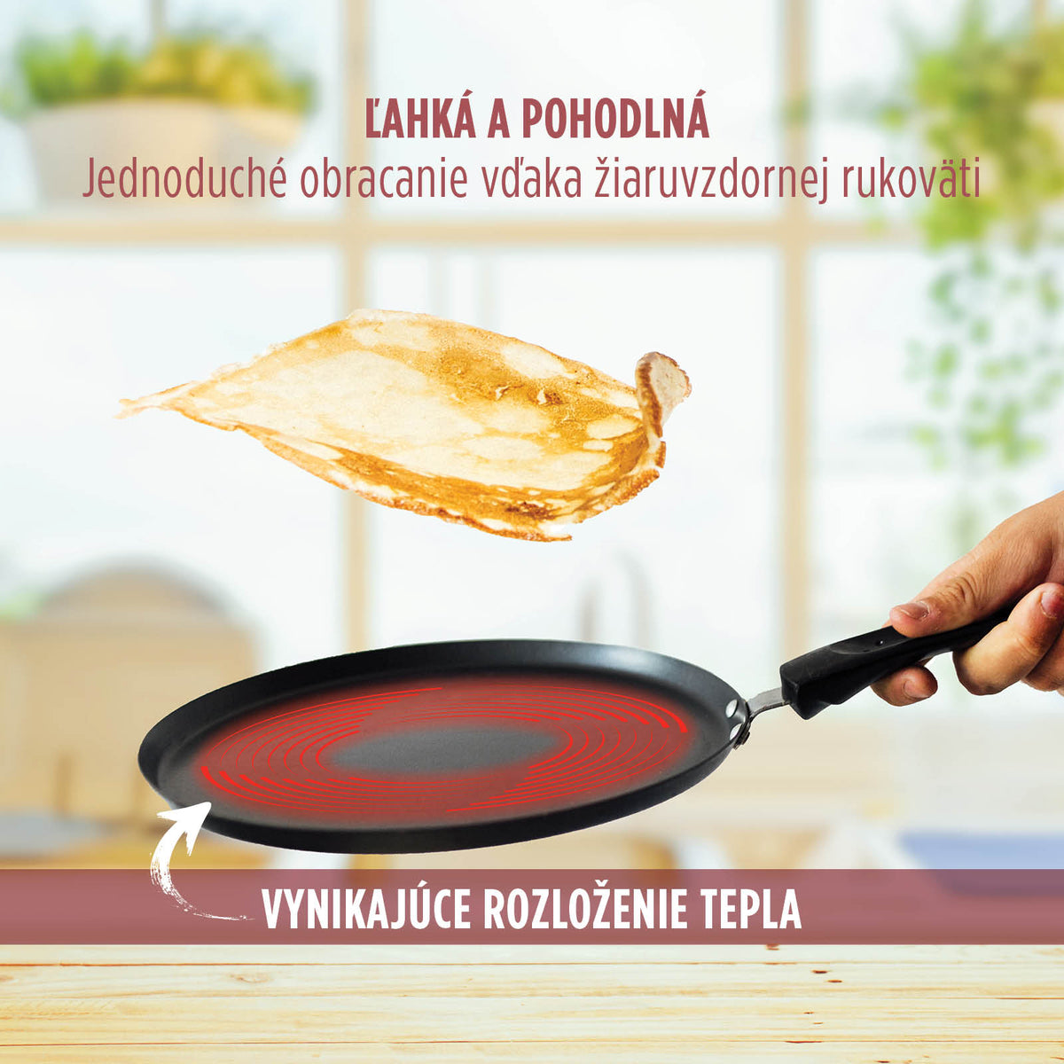 Jednoduché obracanie palaciniek a omelety.