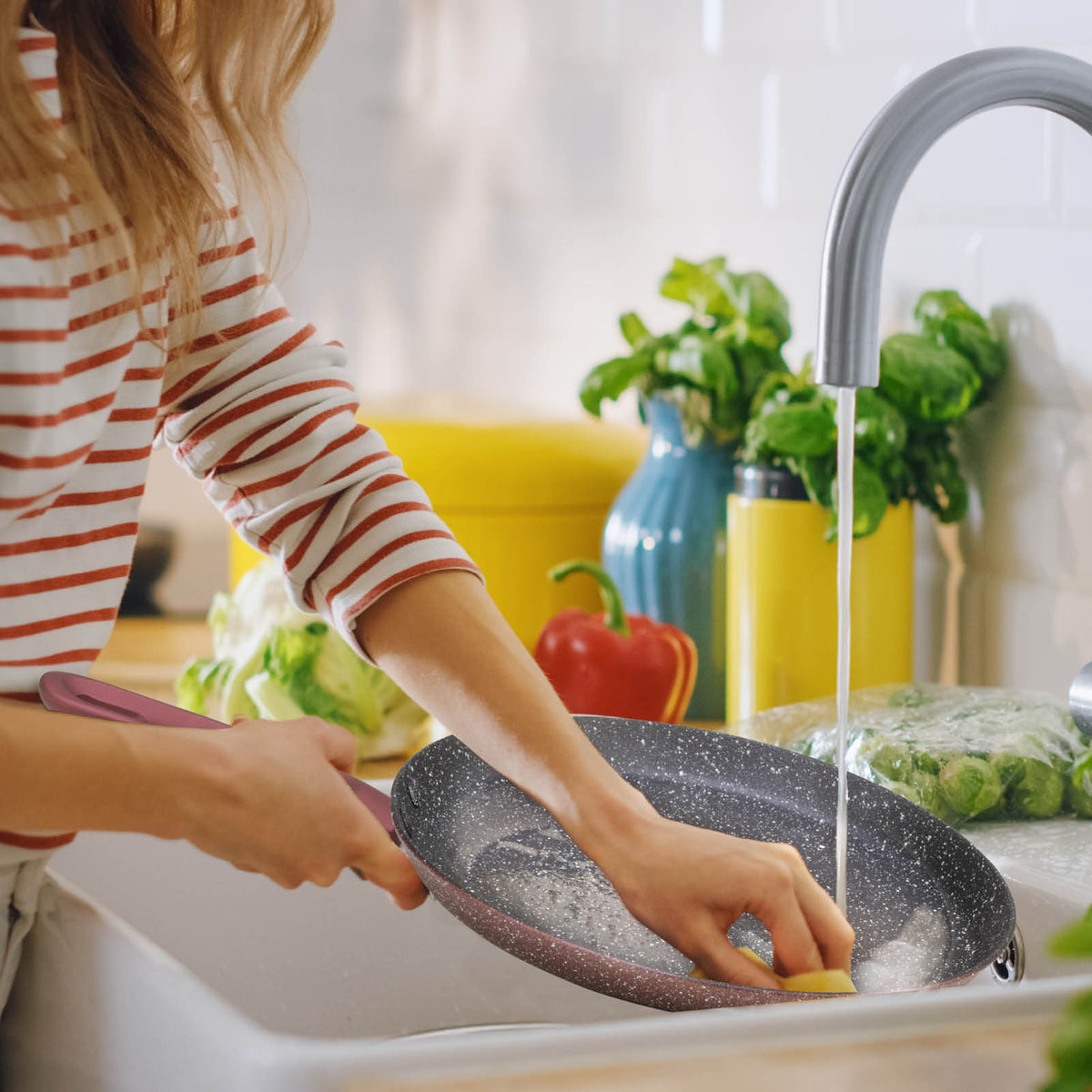 - Vďaka nepriľnavému povlaku na vonkajšej strane riadu je aj čistenie ešte jednoduchšie.