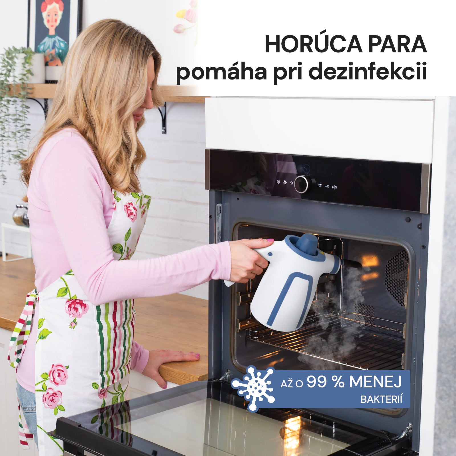 - Horúca para účinne dezinfikuje povrchy a ničí mikroorganizmy.