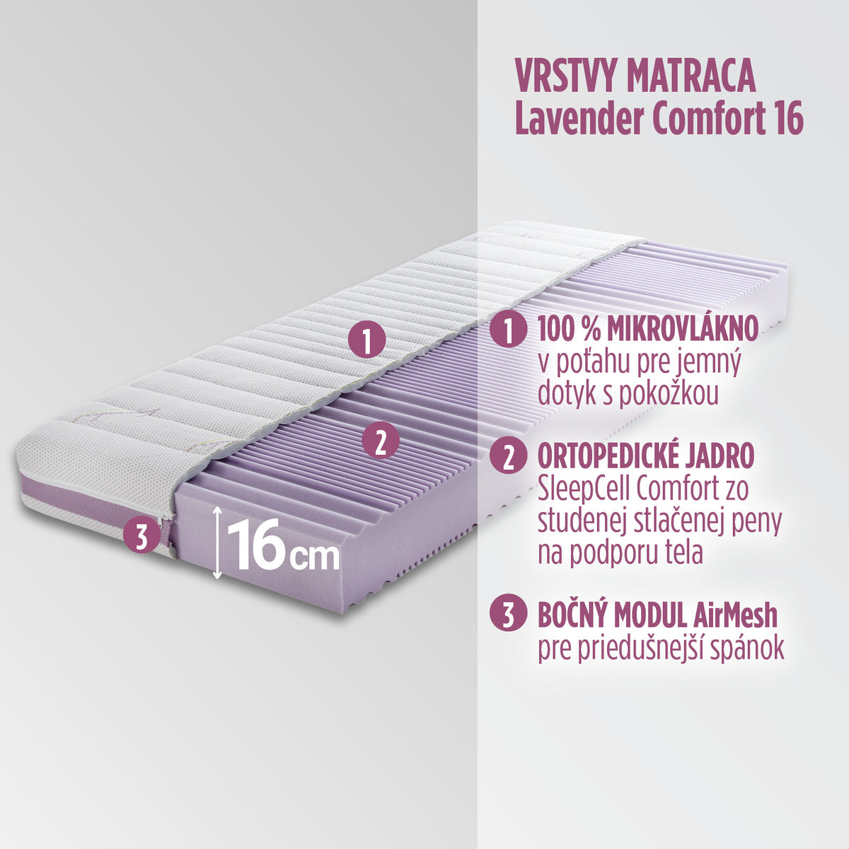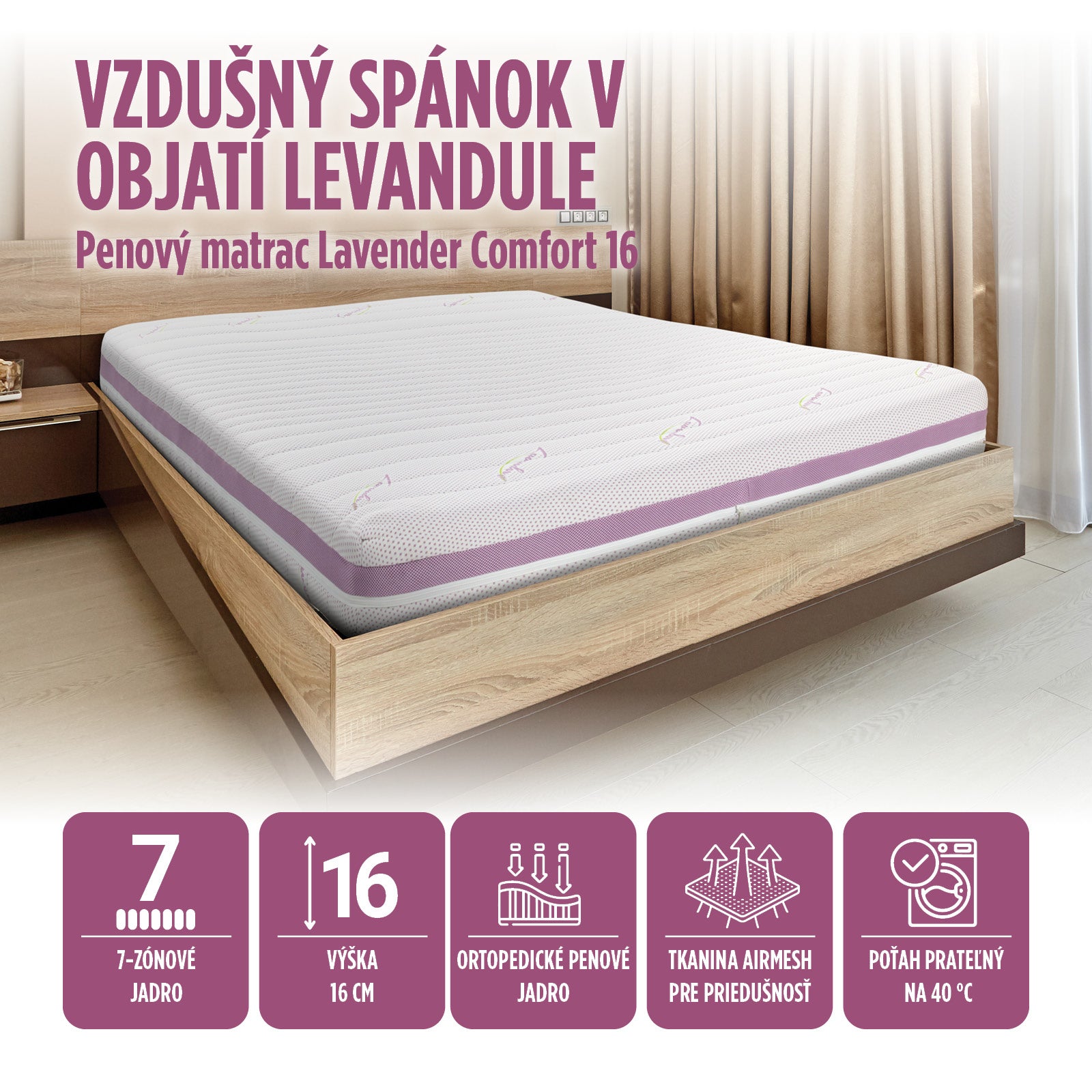 - Matrac Lavender Comfort 16 je ideálny pre každého, kto má hmotnosť do 75 kg a chce sa prebúdzať sviežejší, oddýchnutejší a plný energie.