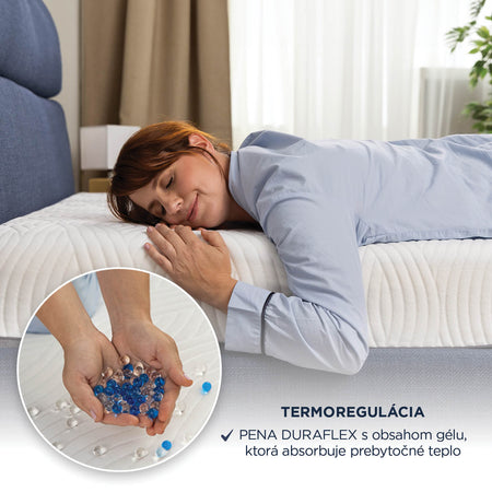 - Pena Duraflex s mikrogélovými kapsulami účinne reguluje teplotu a odvádza prebytočné teplo pre pocit sviežosti.