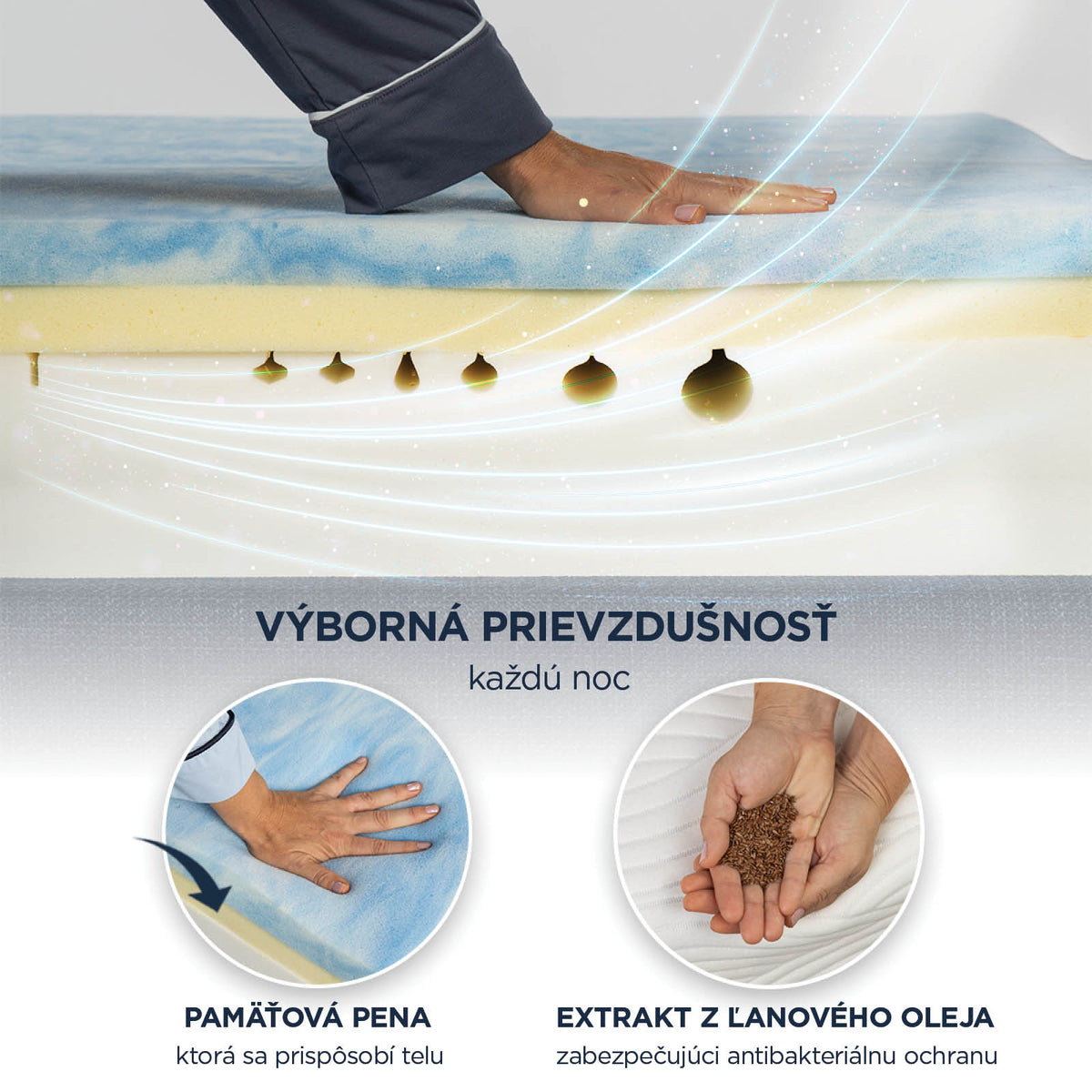 Nenechajte sa ničím rušiť pri spánku. Regulácia teploty pre pocit sviežosti a sucha.