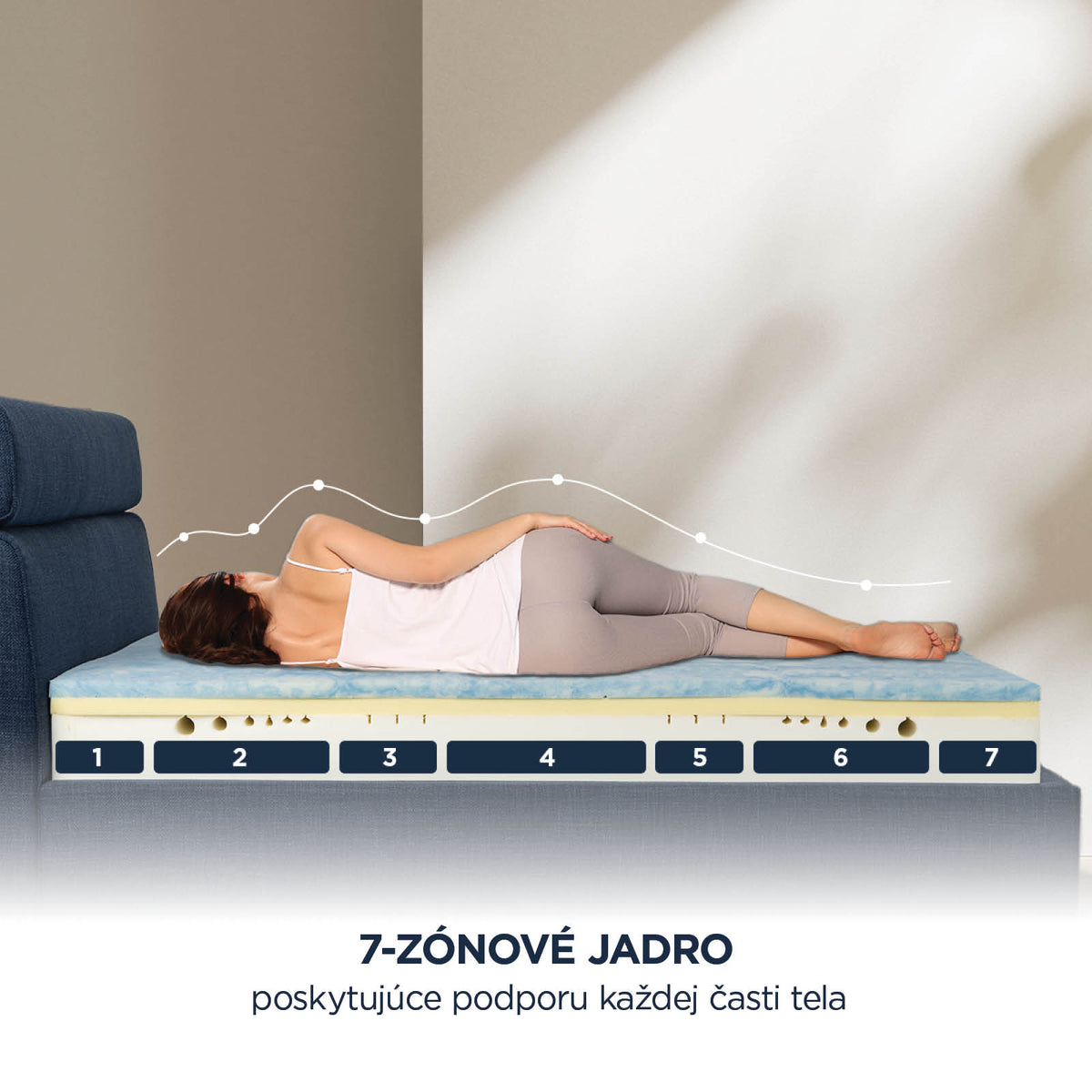 Stabilná opora tela so 7 zónami pre bezbolestný spánok.