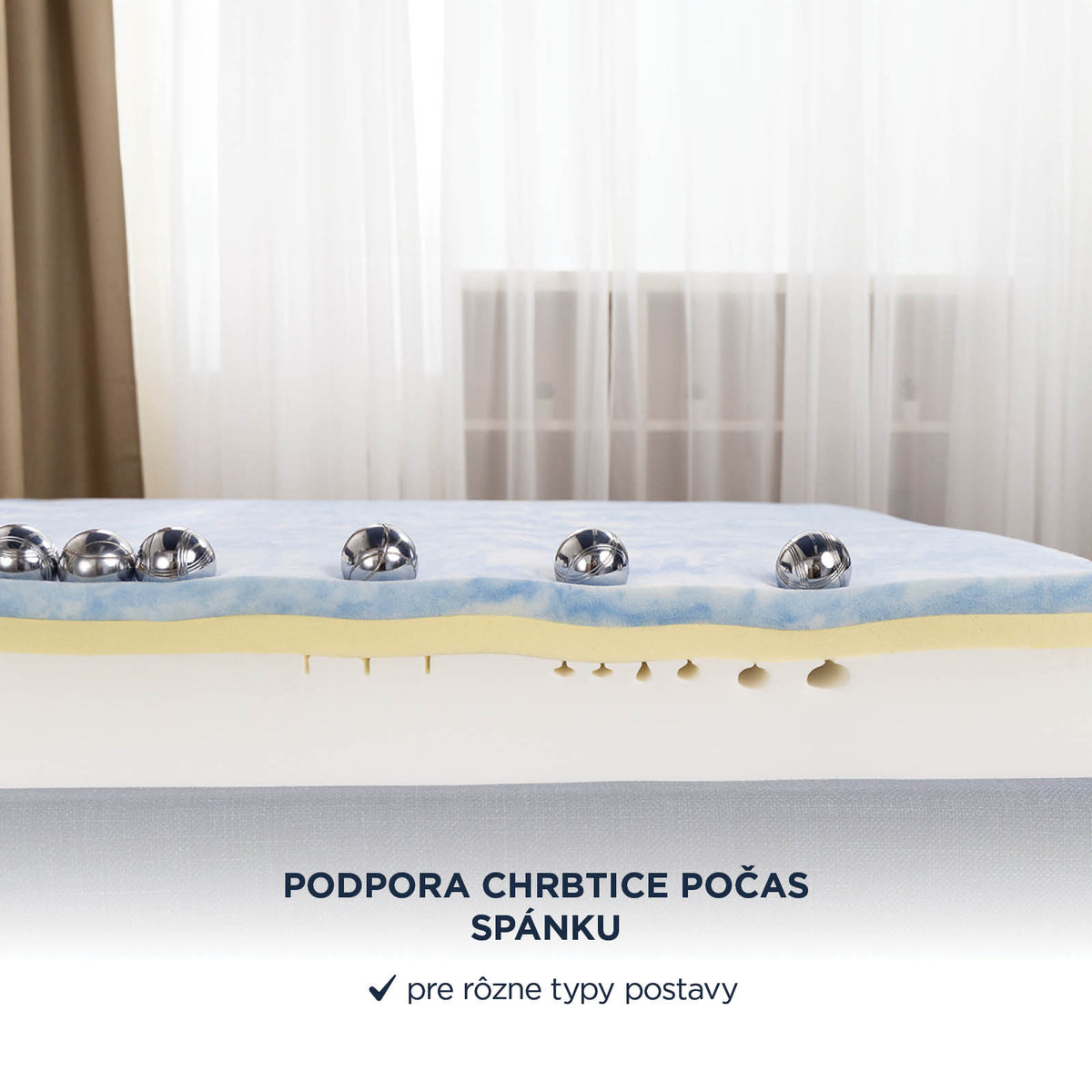 - Pena s mikrokapsulovaným gélom reguluje teplotu pre príjemný spánok v každom ročnom období.