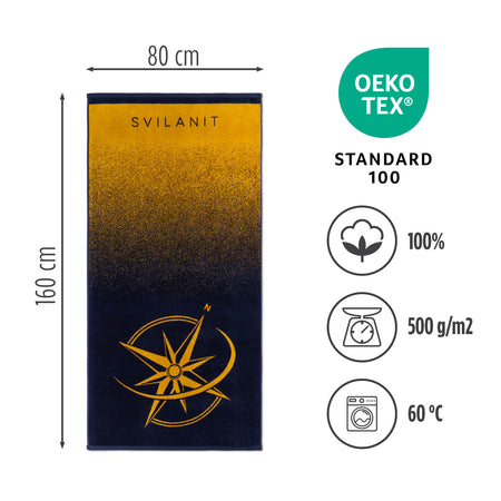 Pocíťte pravú letnú slobodu s plážovou osuškou Svilanit. Jej veľký rozmer poskytuje luxusný priestor na úplný oddych na slnku alebo v príjemnom tieni. Mimoriadne mäkká a husto tkaná 100 % bavlna zabezpečuje výbornú savosť po každom kúpaní, zatiaľ čo certifikát OEKO-TEX zaručuje jemnosť a bezpečnosť pre vašu pokožku. Vyberte si svoj obľúbený motív z pestrej ponuky dizajnov a nechajte osušku stať sa vyjadrením vašej jedinečnej osobnosti. Rozložte si ju pri bazéne, vezmite so sebou na piknik alebo ju využite pri športových aktivitách. Po použití ju jednoducho vyperte na 60 °C a vysušte v sušičke, aby bola vždy pripravená na ďalšie dobrodružstvo.