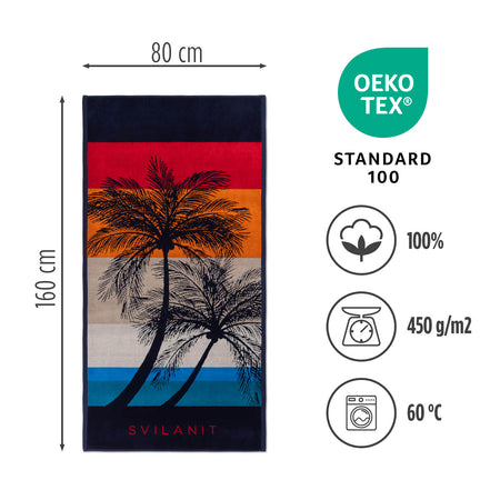 Pocíťte pravú letnú slobodu s plážovou osuškou Svilanit. Jej veľký rozmer poskytuje luxusný priestor na úplný oddych na slnku alebo v príjemnom tieni. Mimoriadne mäkká a husto tkaná 100 % bavlna zabezpečuje výbornú savosť po každom kúpaní, zatiaľ čo certifikát OEKO-TEX zaručuje jemnosť a bezpečnosť pre vašu pokožku. Vyberte si svoj obľúbený motív z pestrej ponuky dizajnov a nechajte osušku stať sa vyjadrením vašej jedinečnej osobnosti. Rozložte si ju pri bazéne, vezmite so sebou na piknik alebo ju využite pri športových aktivitách. Po použití ju jednoducho vyperte na 60 °C a vysušte v sušičke, aby bola vždy pripravená na ďalšie dobrodružstvo.
