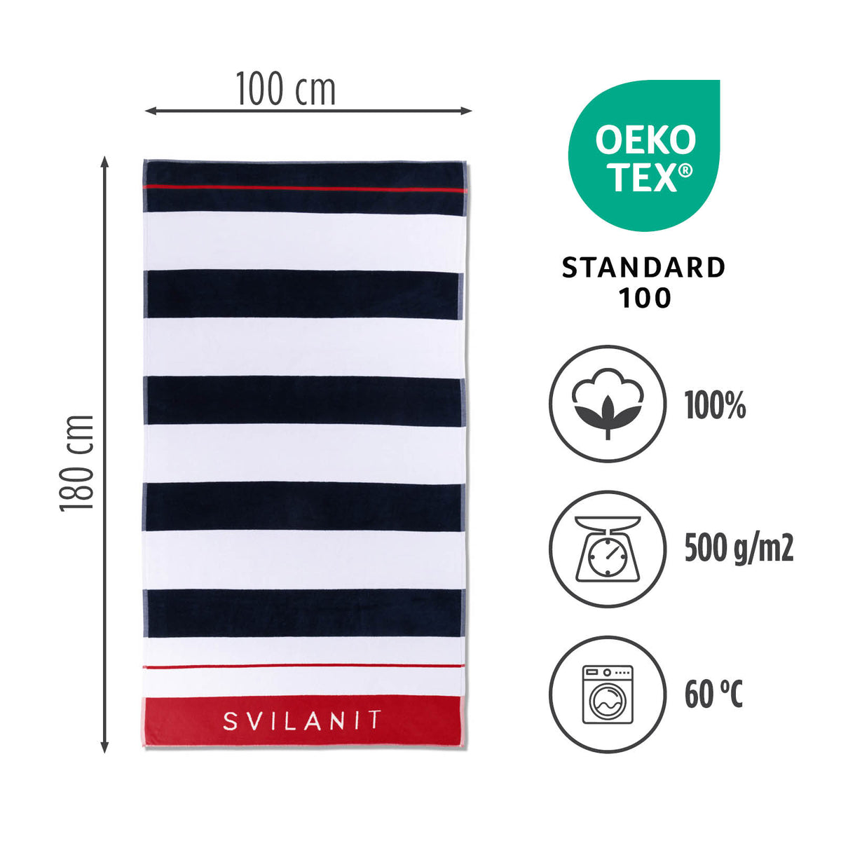 Pocíťte pravú letnú slobodu s plážovou osuškou Svilanit. Jej veľký rozmer poskytuje luxusný priestor na úplný oddych na slnku alebo v príjemnom tieni. Mimoriadne mäkká a husto tkaná 100 % bavlna zabezpečuje výbornú savosť po každom kúpaní, zatiaľ čo certifikát OEKO-TEX zaručuje jemnosť a bezpečnosť pre vašu pokožku. Vyberte si svoj obľúbený motív z pestrej ponuky dizajnov a nechajte osušku stať sa vyjadrením vašej jedinečnej osobnosti. Rozložte si ju pri bazéne, vezmite so sebou na piknik alebo ju využite pri športových aktivitách. Po použití ju jednoducho vyperte na 60 °C a vysušte v sušičke, aby bola vždy pripravená na ďalšie dobrodružstvo.