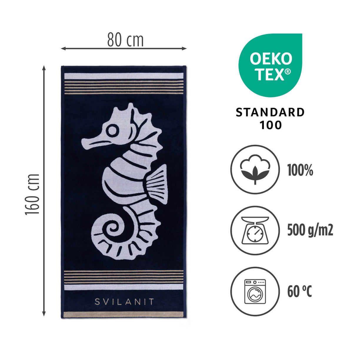Pocíťte pravú letnú slobodu s plážovou osuškou Svilanit. Jej veľký rozmer poskytuje luxusný priestor na úplný oddych na slnku alebo v príjemnom tieni. Mimoriadne mäkká a husto tkaná 100 % bavlna zabezpečuje výbornú savosť po každom kúpaní, zatiaľ čo certifikát OEKO-TEX zaručuje jemnosť a bezpečnosť pre vašu pokožku. Vyberte si svoj obľúbený motív z pestrej ponuky dizajnov a nechajte osušku stať sa vyjadrením vašej jedinečnej osobnosti. Rozložte si ju pri bazéne, vezmite so sebou na piknik alebo ju využite pri športových aktivitách. Po použití ju jednoducho vyperte na 60 °C a vysušte v sušičke, aby bola vždy pripravená na ďalšie dobrodružstvo.
