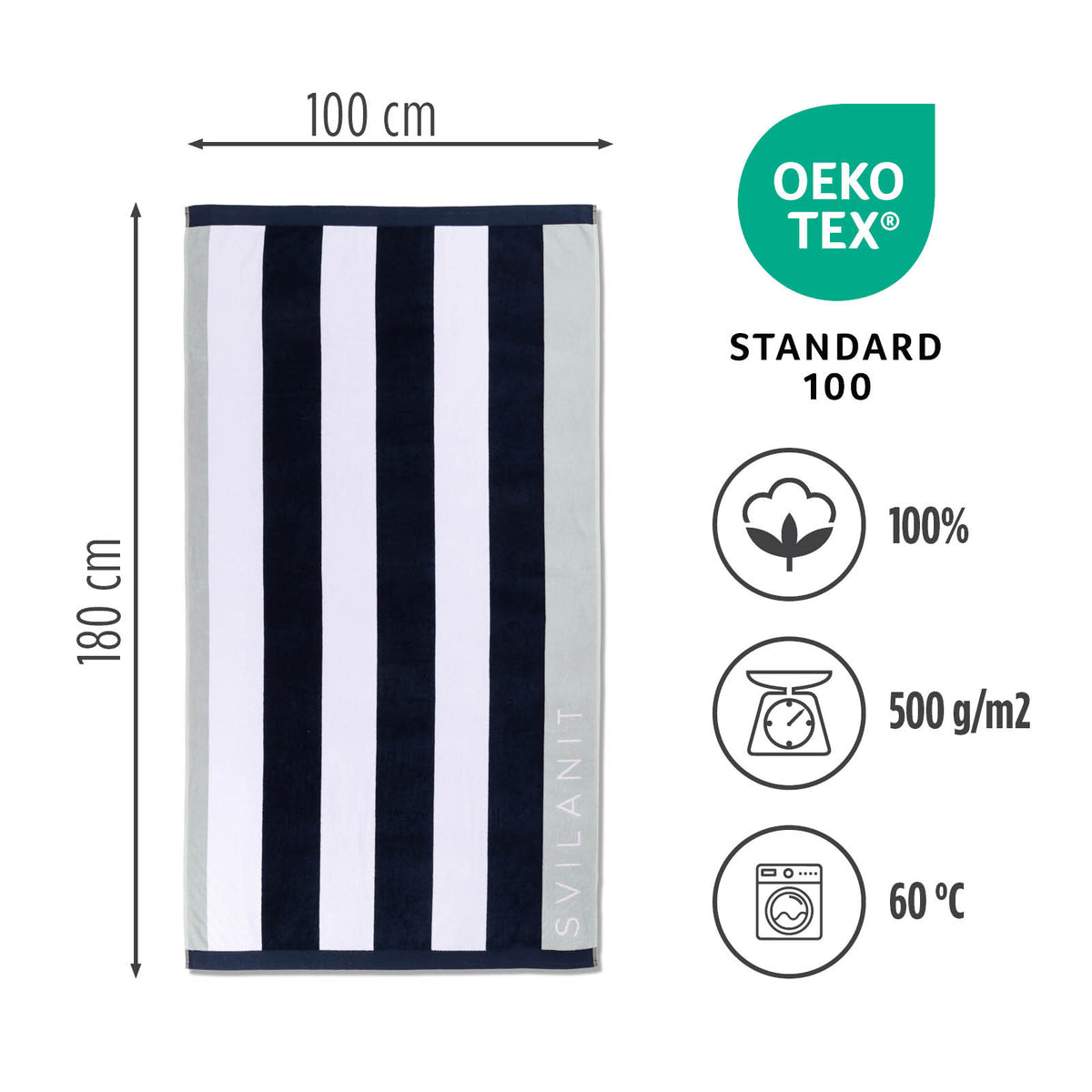 Plážové osušky sú vyrobené zo 100 % bavlny a majú prestížny certifikát OEKO-TEX, čo znamená, že neobsahujú škodlivé látky a sú úplne bezpečné na použitie. Luxusný objem a jemnosť prírodného materiálu jemne pohladia vašu pokožku po každom kúpaní. Môžete ich použiť aj ako podložku na pikniku alebo pri športových aktivitách.