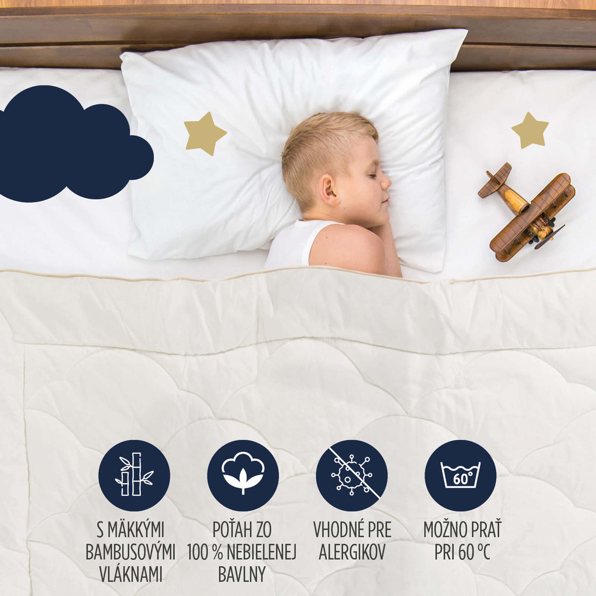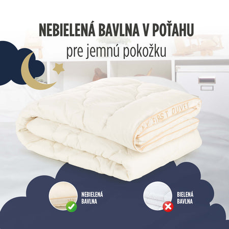 Moja prvá prikrývka bola vyvinutá s ohľadom na našich najmenších. Obliečka z prírodných materiálov a nadýchaná výplň im poskytne útulný a priedušný spánok.