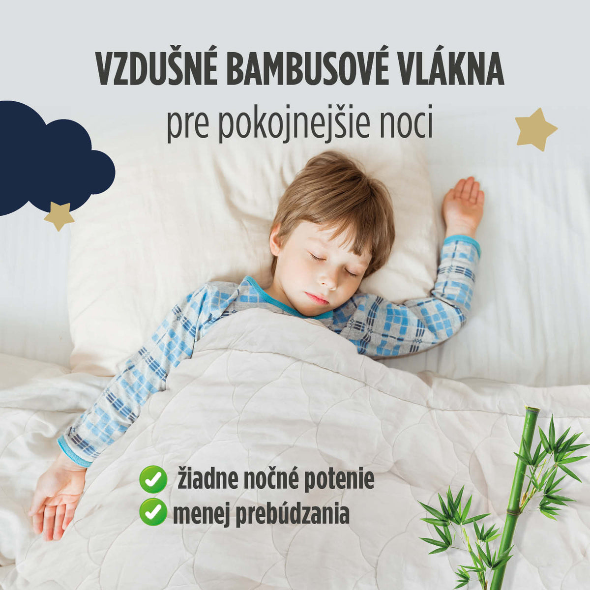 Pre deti je dôležité, aby mali počas spánku optimálnu teplotu a prúdenie vzduchu, pretože im to pomáha dosiahnuť hlbší a pokojnejší spánok. Výnimočná kombinácia nebielenej bavlny a bambusových vlákien v poťahu zabezpečuje priedušnosť, absorpciu a odvod vlhkosti a reguláciu teploty vo všetkých ročných obdobiach, takže sa vaše dieťa nebude budiť príliš mokré.