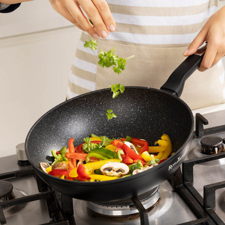 Vysoko kvalitný nepriľnavý minerálny povrch umožňuje varenie s minimálnym množstvom tuku, vďaka čomu sú vaše jedlá zdravšie a zároveň si zachovávajú rovnakú lahodnú chuť a živiny. Keďže kuchynský riad z kovaného hliníka sa zohrieva obzvlášť rýchlo a efektívne, pri príprave jedla strávite menej času a energie.