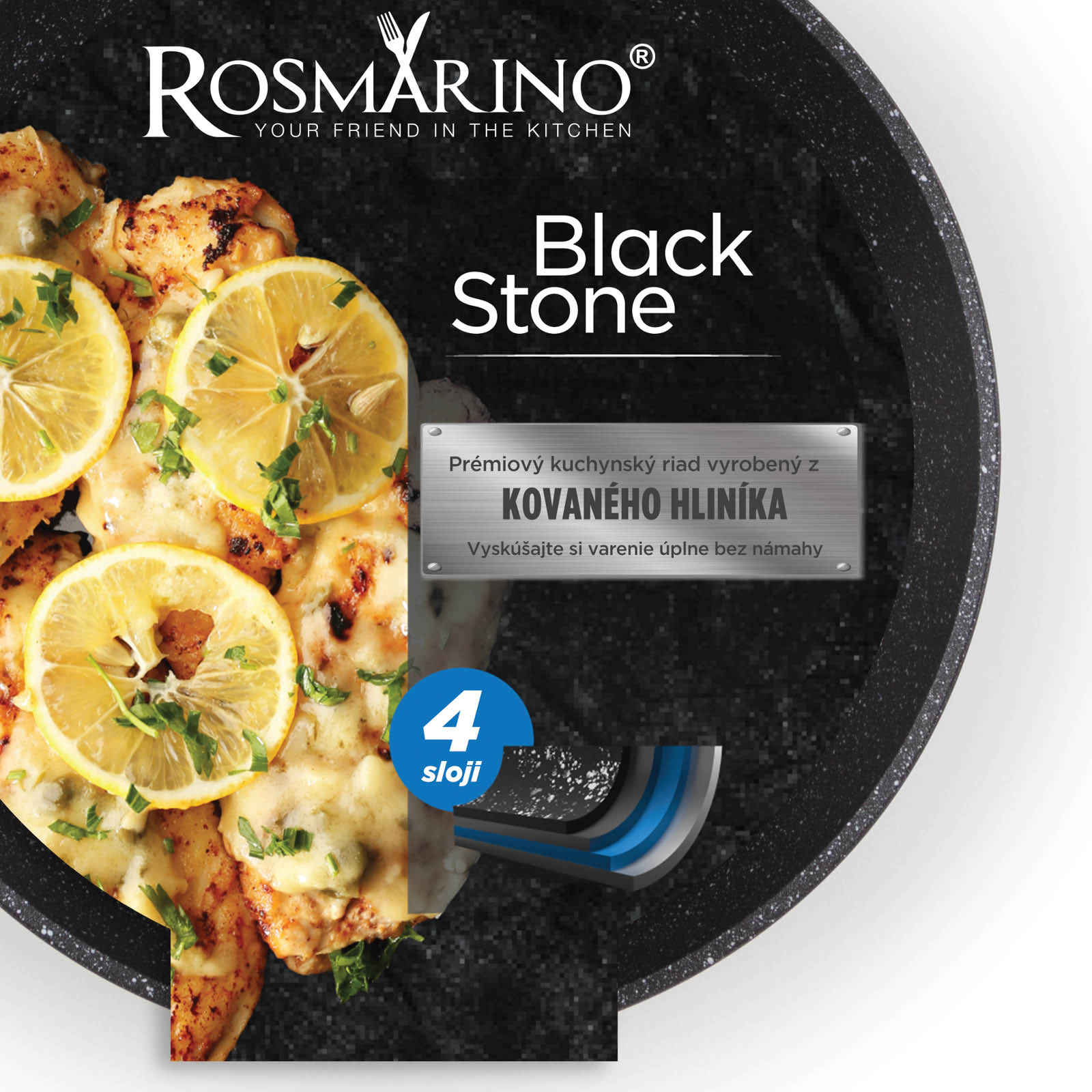 - 4-vrstvový kuchynský riad s nepriľnavým minerálnym povrchom na varenie s menším množstvom tuku a zdravšie jedlá.