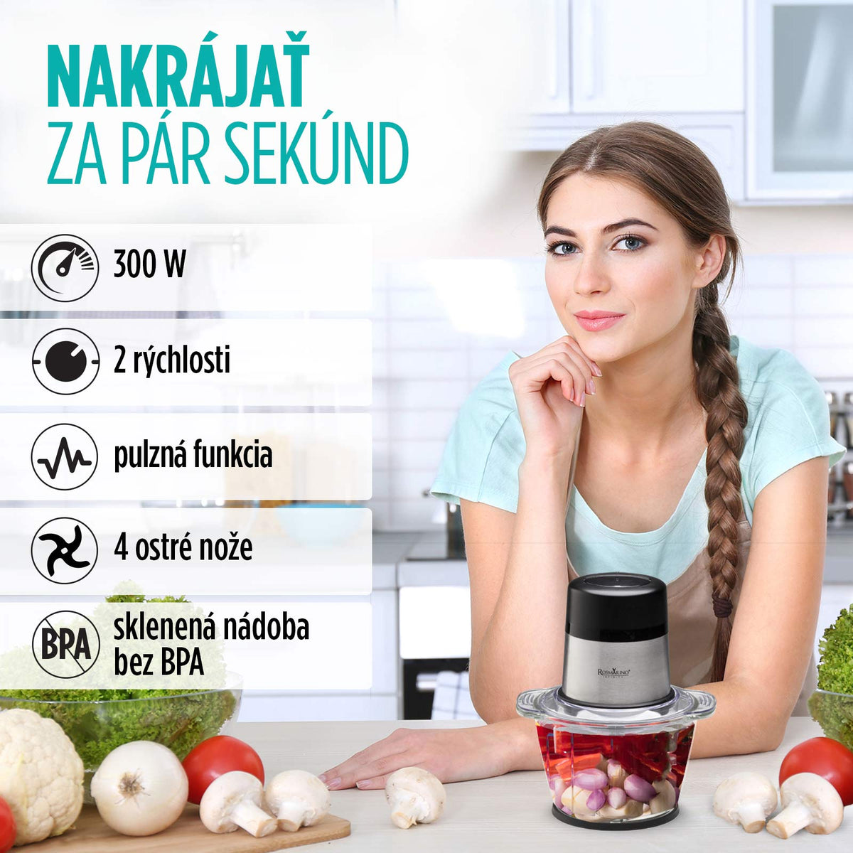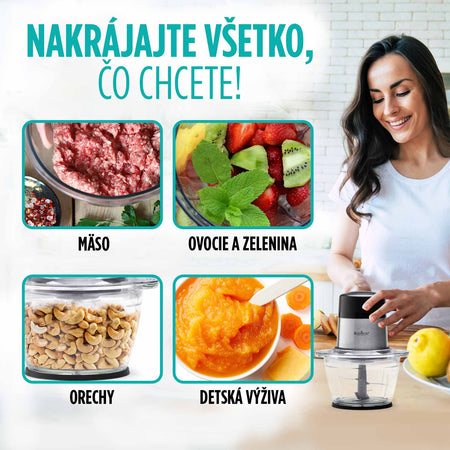 - Výkonný sekáčik na rýchle a efektívne nasekanie rôznych druhov potravín.