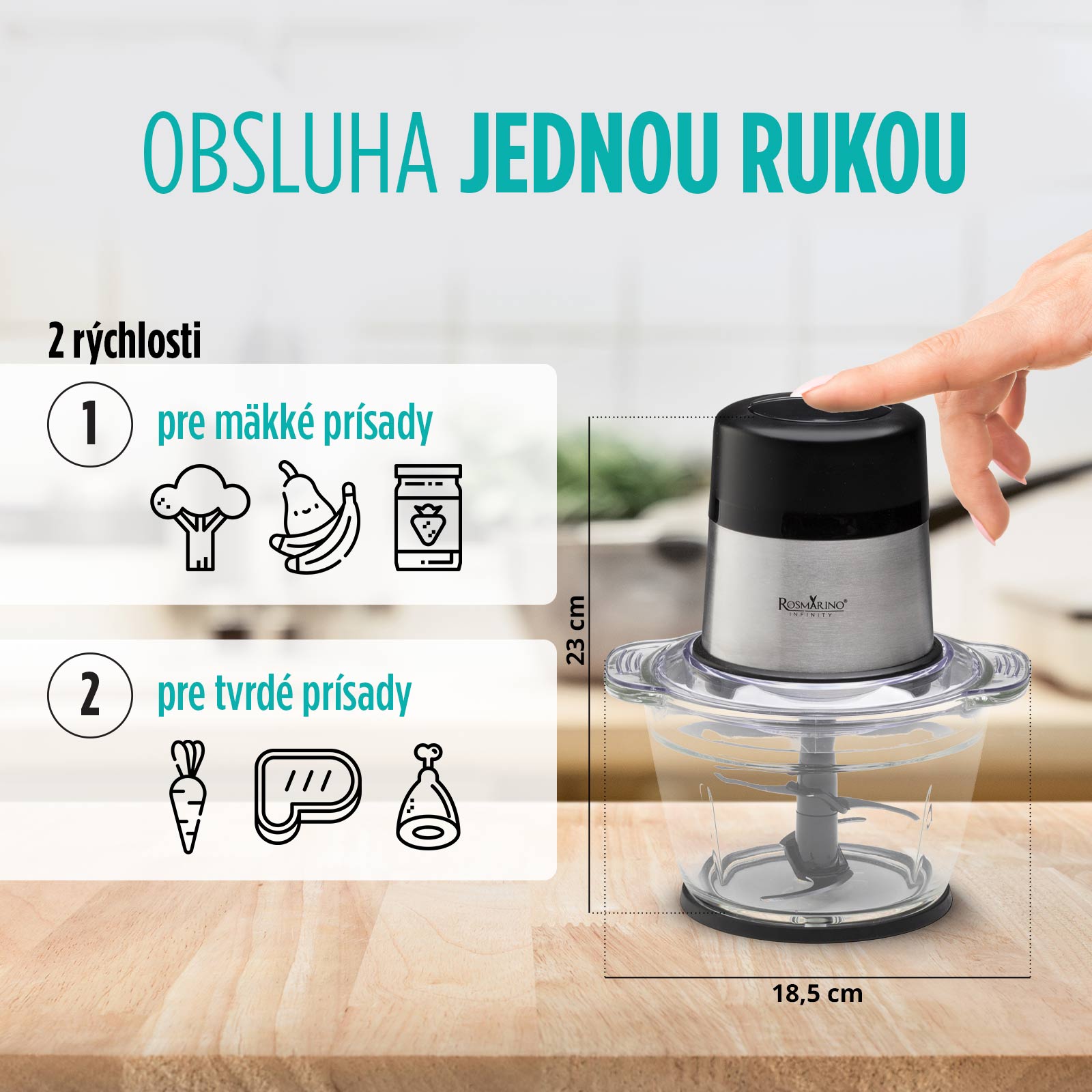 - Ideálny pomocník pre tých, ktorí nemajú veľa času na prípravu jedál a hľadajú rýchly a jednoduchý spôsob mletia a sekania najrôznejších potravín.