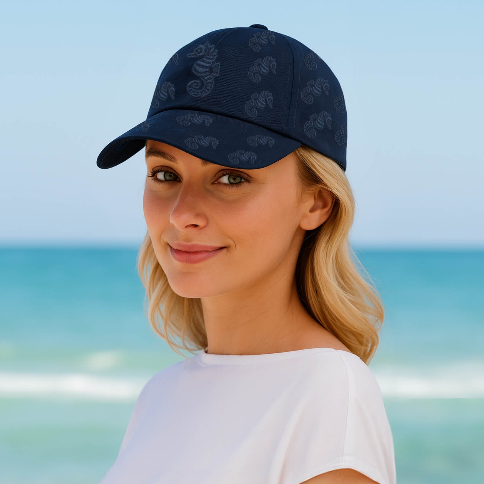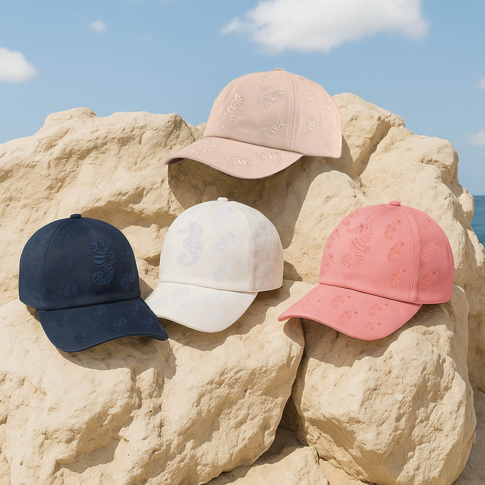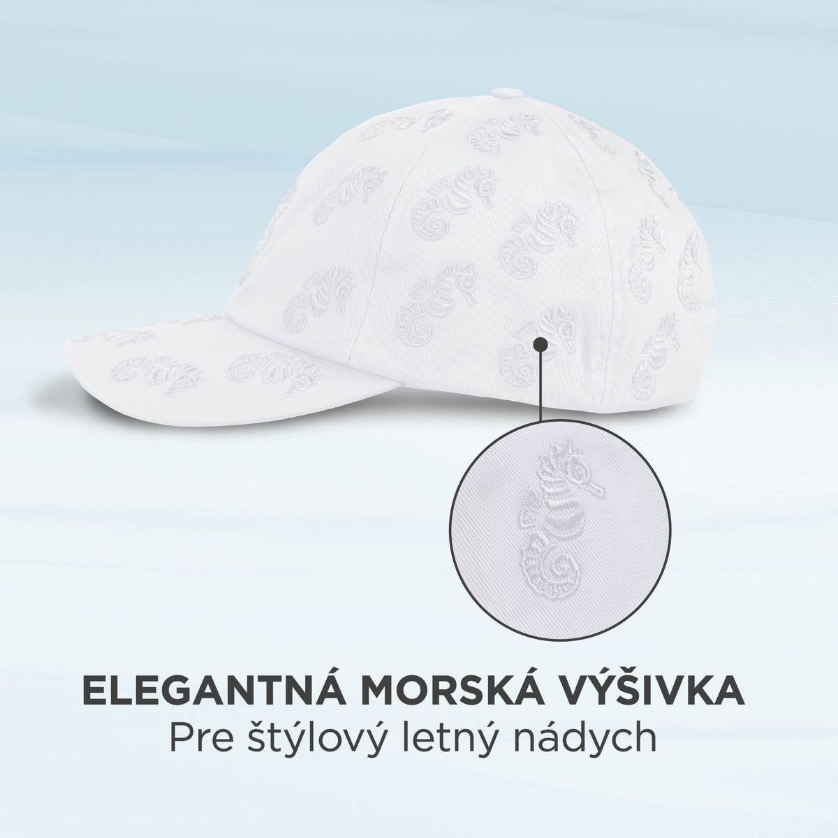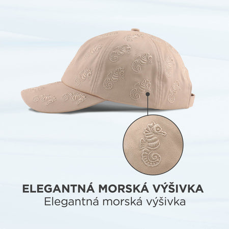 Starostlivo vyšité morské koníky po celej ploche šiltovky jej dodávajú stredomorský nádych a bezstarostnú letnú atmosféru. Tento jedinečný detail mení šiltovku na módny doplnok, ktorý krásne doplní každý letný vzhľad.