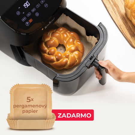 - Darček: brožúra s elektronickými receptami a 5 kusov papiera na pečenie.