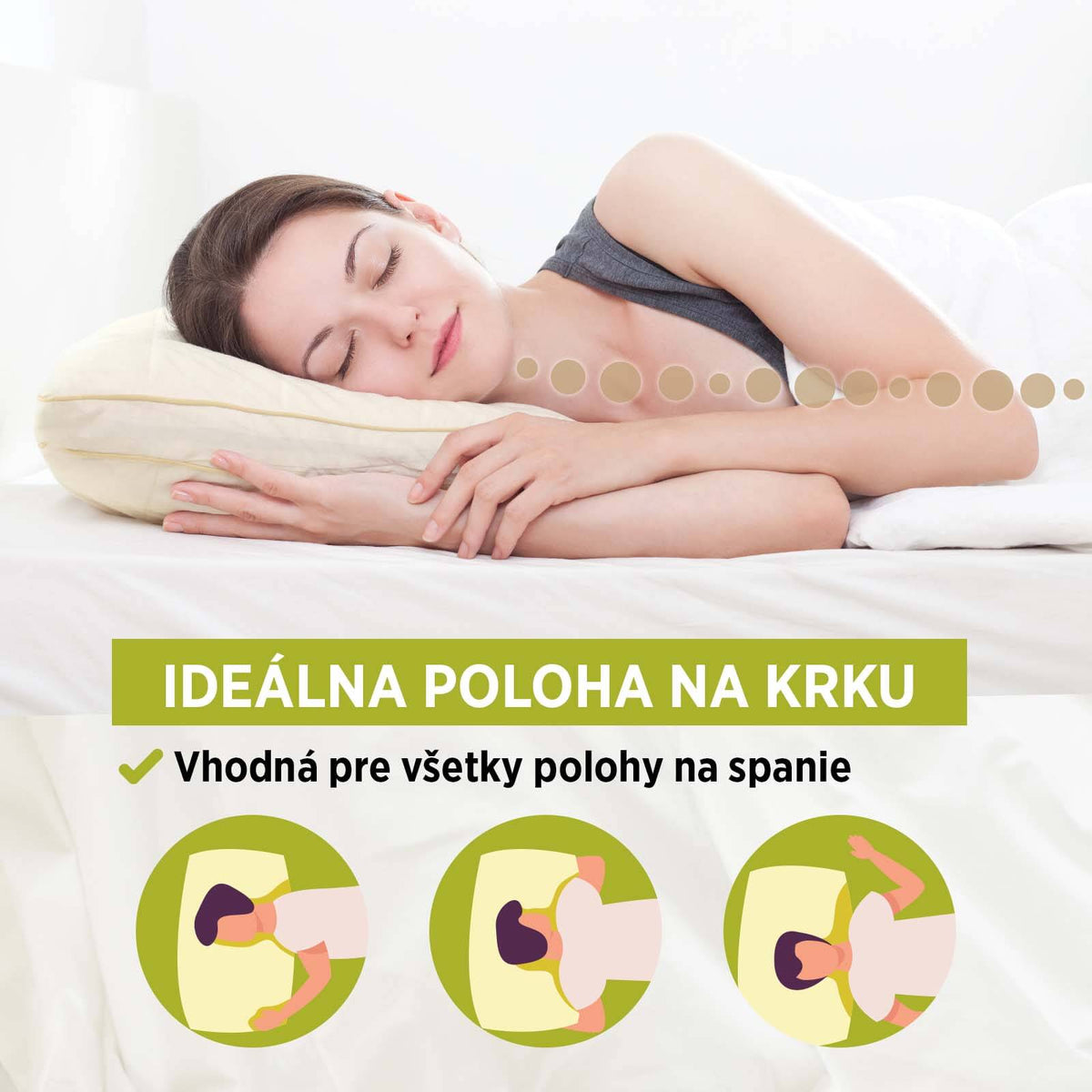 - Vhodný pre všetky polohy spánku: na chrbte, na boku a dokonca aj na bruchu.
