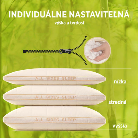 - Individuálne nastavenie výšky vám umožní prispôsobiť vankúš vašim vlastným preferenciám a polohe spánku.