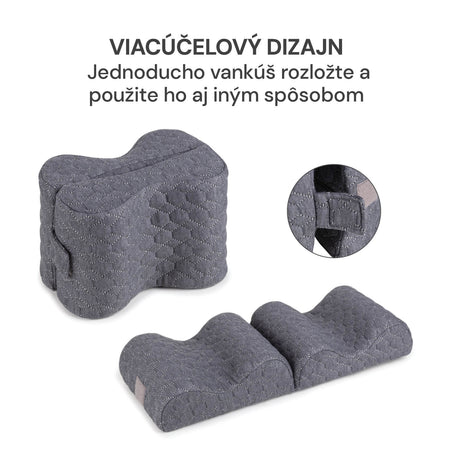- Ergonomický tvar vankúša na kolená pomáha udržiavať správne vyrovnanie chrbtice a znižuje tlak na kolená, dolnú časť chrbta a boky.